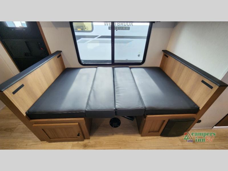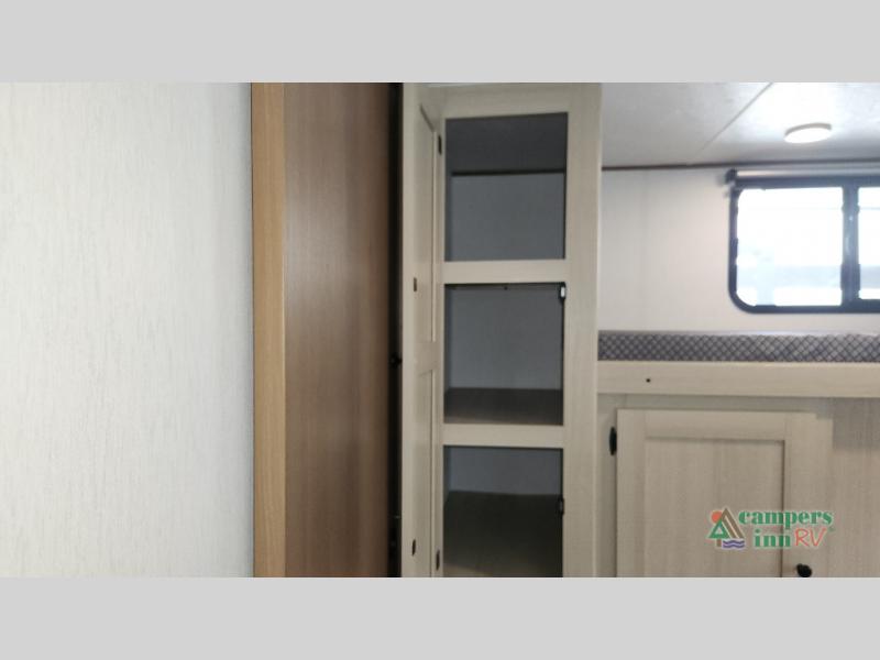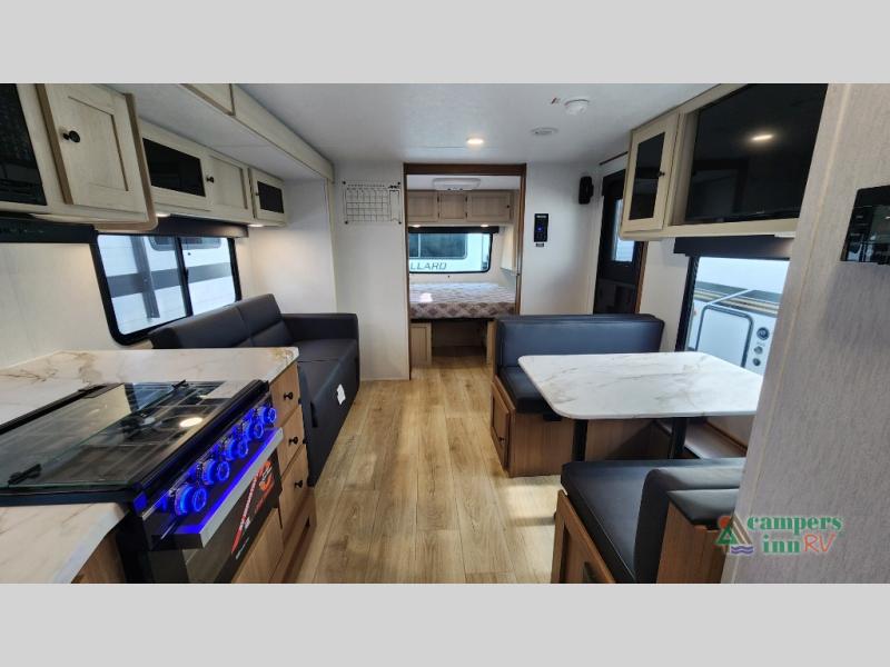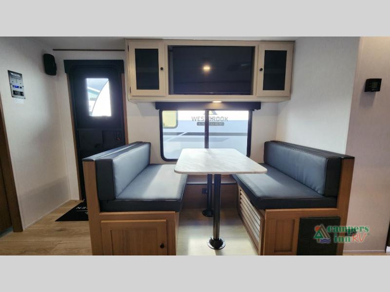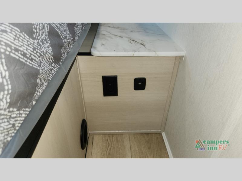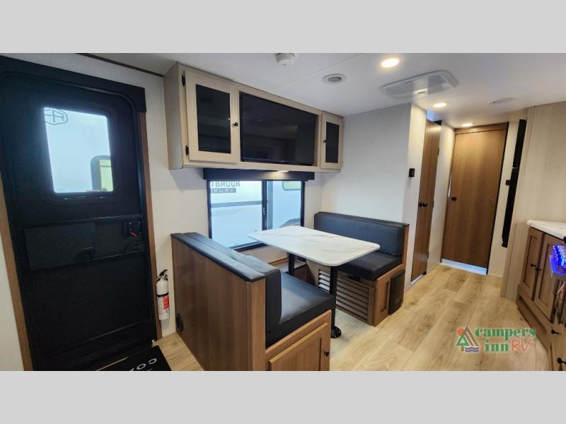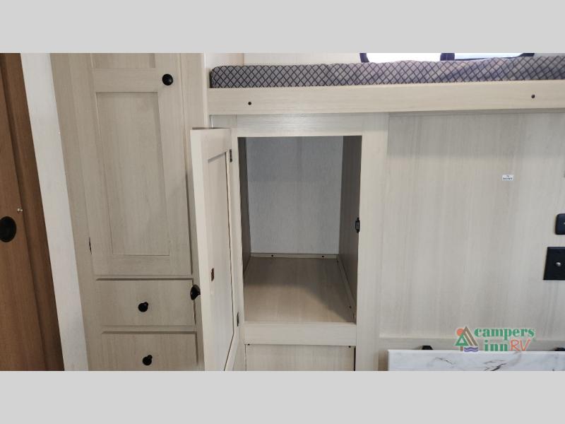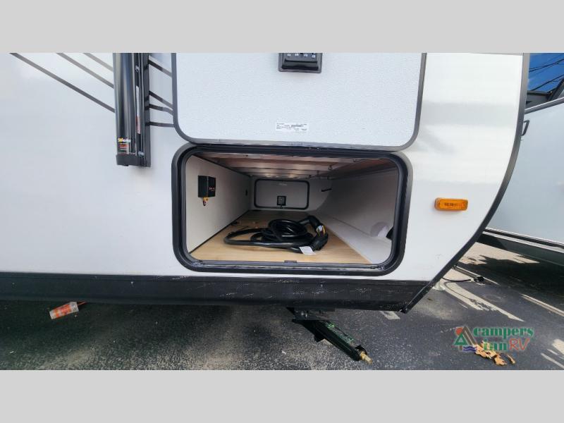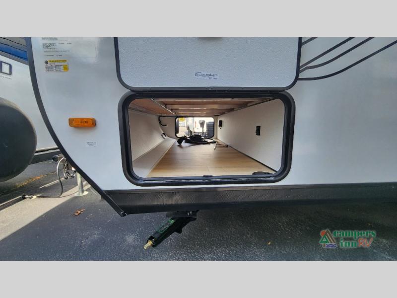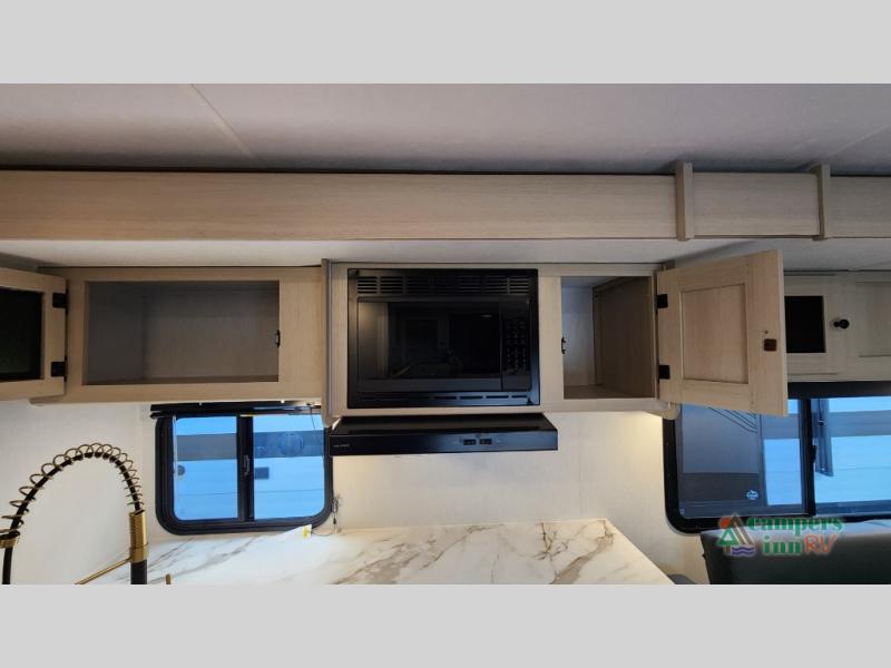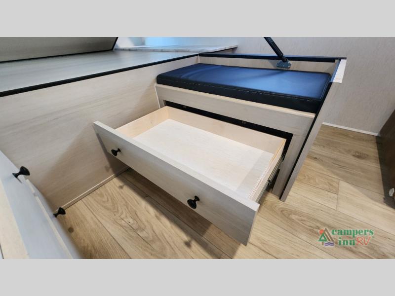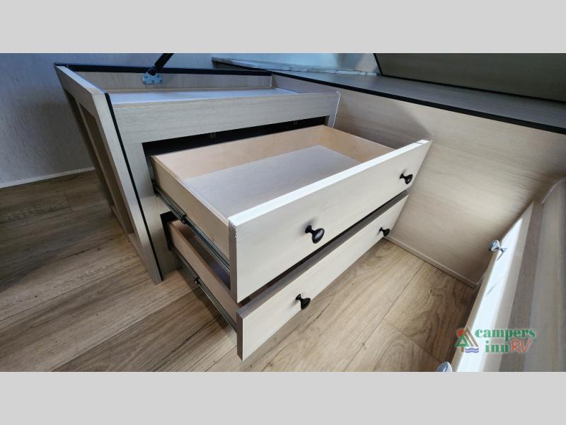 Step inside and discover spacious living with two slide-outs, a private bunkhouse for the kids or guests, and a separate queen bedroom up front for peaceful nights. The booth dinette and sofa create a cozy living area for meals, movie nights, or rainy-day games — and when it’s time to head outside, the 18' power awning with LED lighting extends your living space right to the campsite.