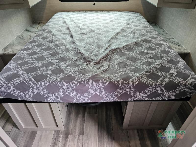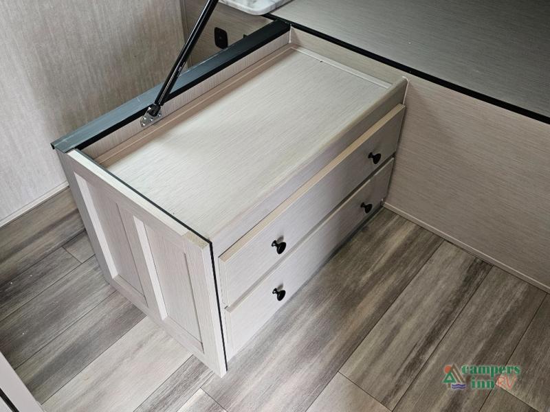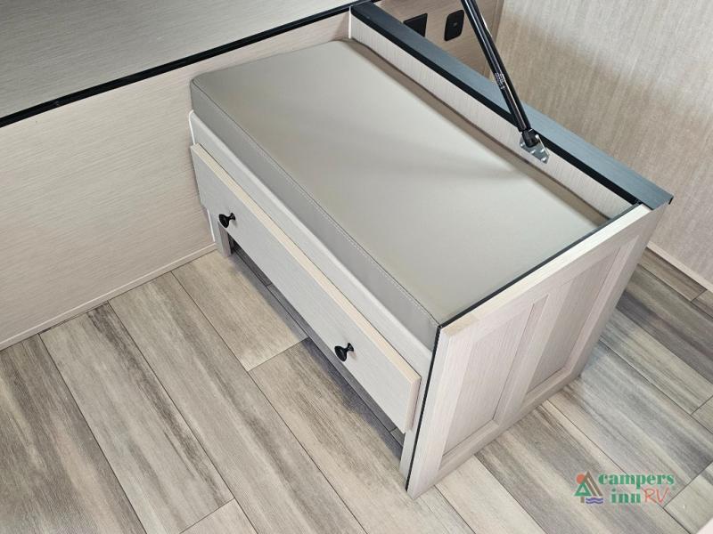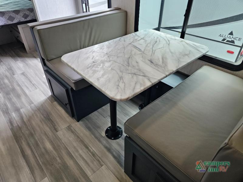 Booth dinette and sofa in the main living area convert to extra sleeping spaces