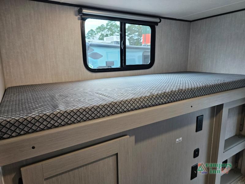 Private rear bunkhouse with a slide-out futon and overhead bunk, plus an additional bunk bed