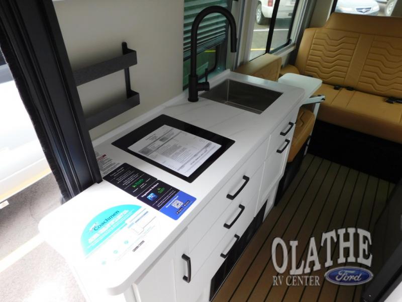 The Beyond Class B gas motorhomes by Coachmen are packed full of stylish and convenient features to meet your adventurous lifestyle. You will love how easy it will be to drive with the Supersprings International suspension kit, the ten speed transmission, and the added safety features, like the blind spot assist and forward collision warning. The ABS insulated rear doors will provide more protection during the colder months, plus each model includes a Truma Combi Eco Plus furnace/water heater for maximum efficiency. A King Olympus digital antenna, WiFi router and cell booster prep means you can stay connected to the outside world as you travel, and the Firefly multiplex system includes dual screens to control your coach's functions with ease. Inside, you'll find hardwood cabinetry, a one-piece fiberglass shower, a rear pull-down screen and rear window covers, and two contemporary decor choices to fit your style. The optional Li Lithium Battery System can be added which features a 640 amp-hour lithium battery, a Xantrex XC Pro 3,000W inverter/charger, A Bluetooth battery management system, and more power features!
