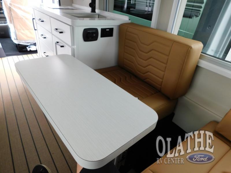 This all-wheel drive coach is perfect for trips near and far. Once you park, you can swivel the captain's seats around to enjoy lunch at the swivel table, and you can freshen up in the convenient wet bath before heading out to stretch your legs. There is an induction cooktop, a round sink, plus a Nova Kool compressor refrigerator for your perishables. The two jump seats and rear power sofa will convert to a comfortable bed at night, and the swivel table in between will allow you to play a game of cards before bed. And don't worry about storage space since this model includes overhead compartments and a wardrobe to keep your clothes wrinkle-free!