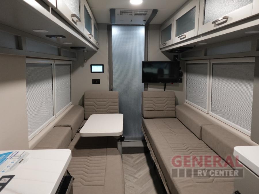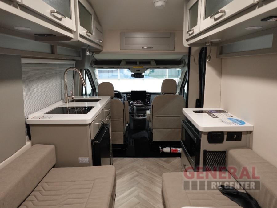 The Beyond Class B gas motorhomes by Coachmen are packed full of stylish and convenient features to meet your adventurous lifestyle. You will love how easy it will be to drive with the Supersprings International suspension kit, the ten speed transmission, and the added safety features, like the blind spot assist and forward collision warning. The ABS insulated rear doors will provide more protection during the colder months, plus each model includes a Truma Combi Eco Plus furnace/water heater for maximum efficiency. A King Olympus digital antenna, WiFi router and cell booster prep means you can stay connected to the outside world as you travel, and the Firefly multiplex system includes dual screens to control your coach's functions with ease. Inside, you'll find hardwood cabinetry, a one-piece fiberglass shower, a rear pull-down screen and rear window covers, and two contemporary decor choices to fit your style.