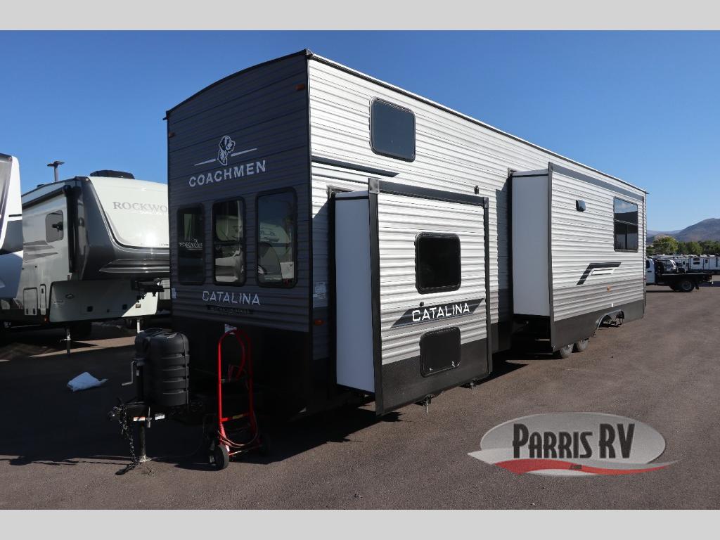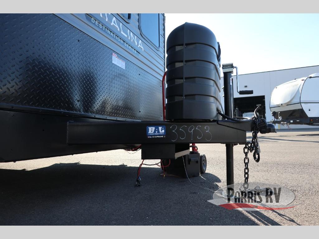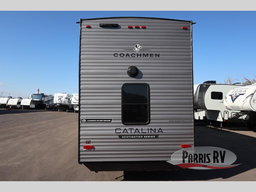 With any Catalina Destination trailer by Coachmen, you will enjoy comfortable extended stays wherever you decide to set up camp! The full length frame outriggers add strength to each unit, along with a seamless Alpha Roof membrane and Norco electromagnetic, powder coated chassis. You will love the open views provided by the large front bay windows, plus there are GE appliances, woodplank linoleum flooring, and hard valance window treatments to make your space feel more like home. Head outside to find a convenient "Leash Link" quick hookup D-ring for your furry friends, premium JBL exterior speakers, flush mount baggage doors for your gear, and the list of amenities goes on!