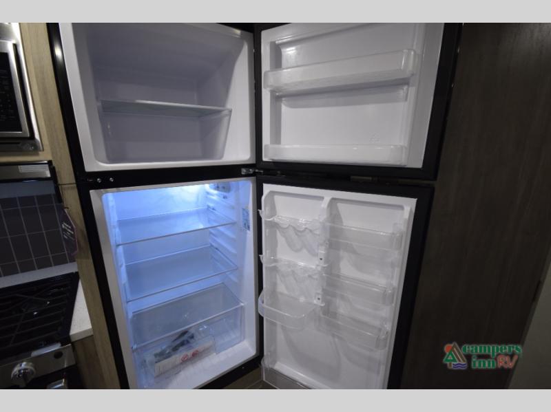The spacious slide-out opens up the main living area, giving you room to relax and entertain. Choose between a traditional booth dinette or optional free-standing table and chairs, and stretch out on the comfortable sofa—complete with built-in drink holders.