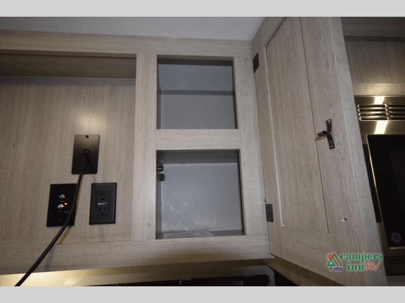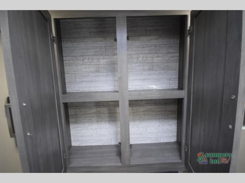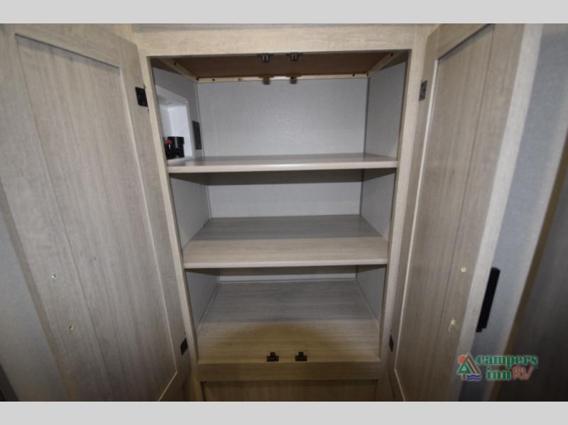 In the kitchen, you'll find everything you need to create meals on the go, from the fully equipped galley to the handy breakfast bar—perfect for coffee, snacks, or quick bites. The unique wardrobe/pantry combo in the rear corner delivers flexible storage space, whether you’re packing clothing, dry goods, or both.