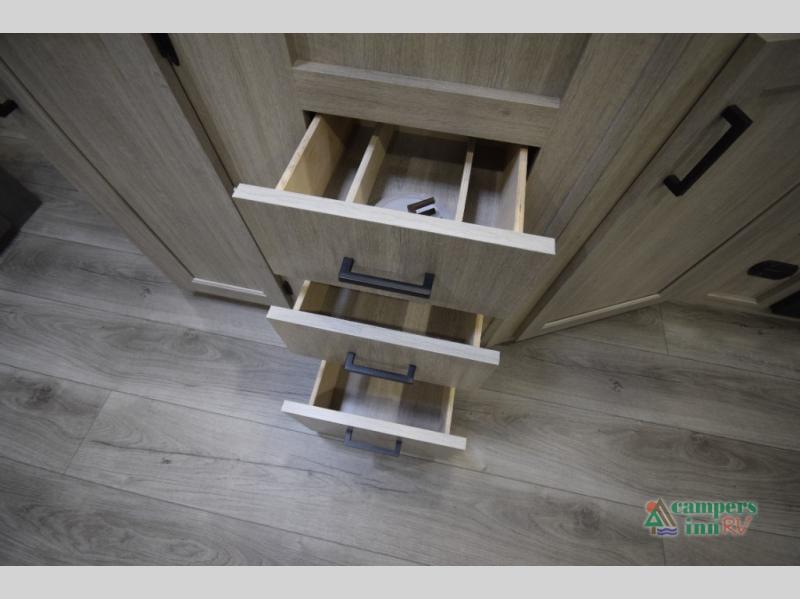 Step inside and enjoy 6'9" interior height, Congoleum woodplank linoleum flooring, seamless Thermofoil countertops, and stylish hard valance window treatments that blend form and function.