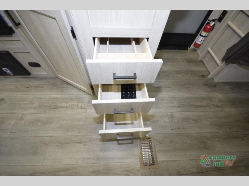 Smart Storage: Pass-through storage, pantry space, under-bed compartments, and clever cabinetry help keep everything organized for life on the move.