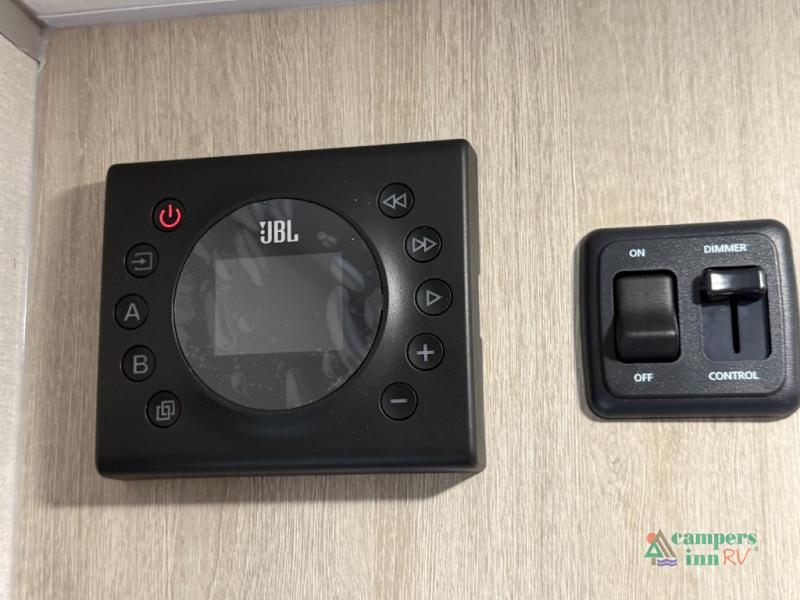 Premium JBL Aura Cube multi-zone stereo, interior and exterior speakers, and an All-In-One control panel with dimmers