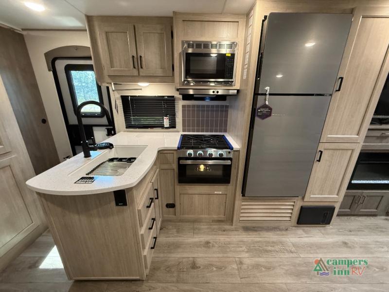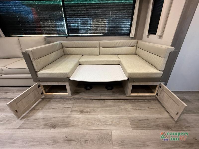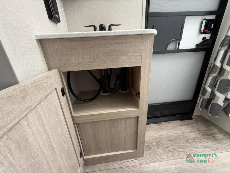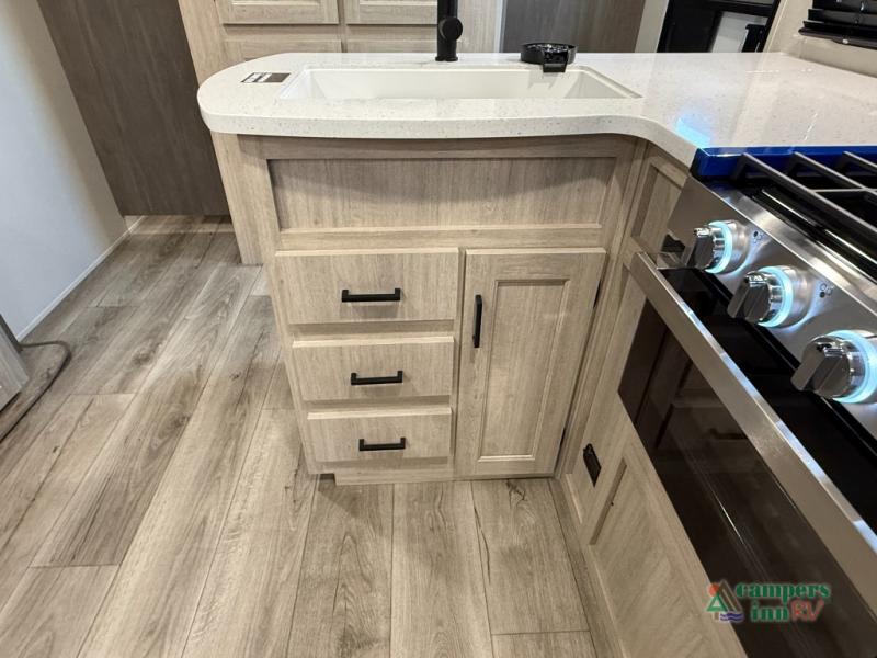 Exterior camp kitchen or kitchen + storage (floorplan dependent), rear-view camera prep, solar prep wiring, MORryde solid steps, and more