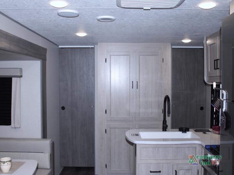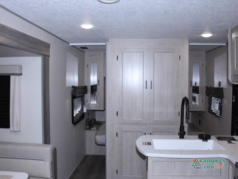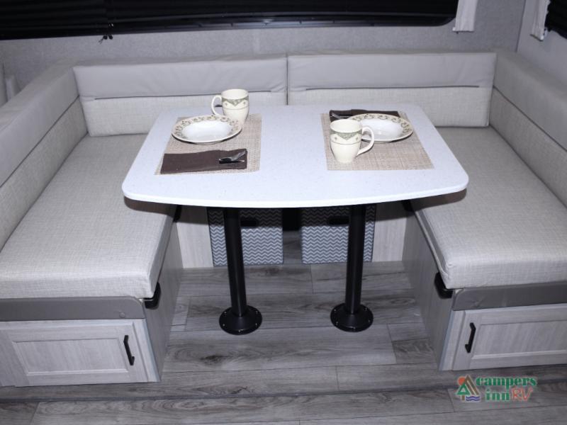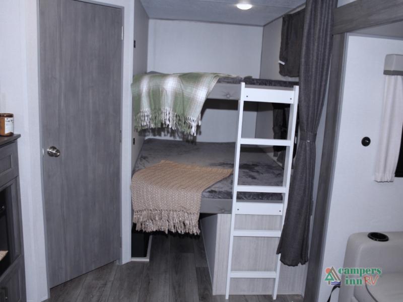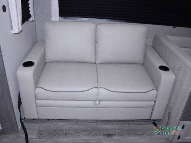 Designed with families and friend groups in mind, the 273DBH features double-size rear bunks, a private front RV queen bed, and a large U-shaped dinette that converts into extra sleeping space. There's even a cozy trundle sofa—perfect for movie nights or unexpected guests. With the ability to comfortably sleep 8-10 people, this RV is built for making memories.