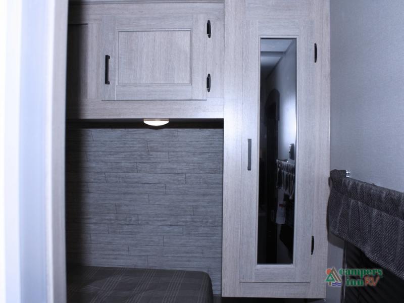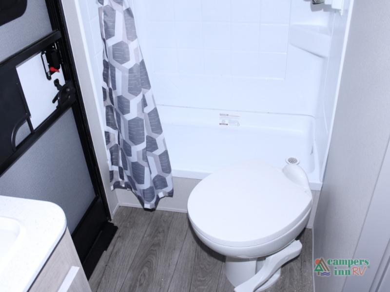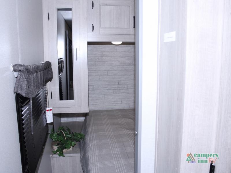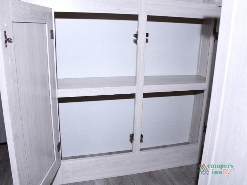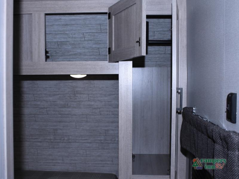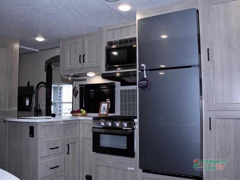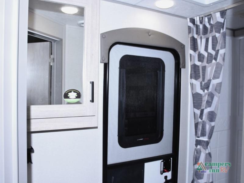 Two entry doors make campground life easier—use the rear entry directly into the full bath for quick cleanups, or step into the front living space to unwind in style. A super slide-out expands the living area, creating an open feel that rivals home. Every detail, from the solid surface countertops to the hard valance window treatments, reflects Coachmen’s commitment to comfort and quality.