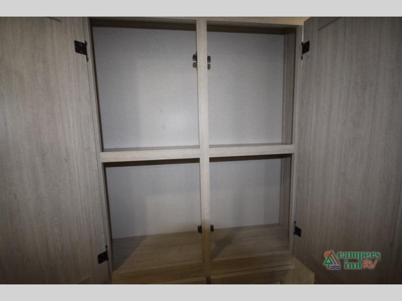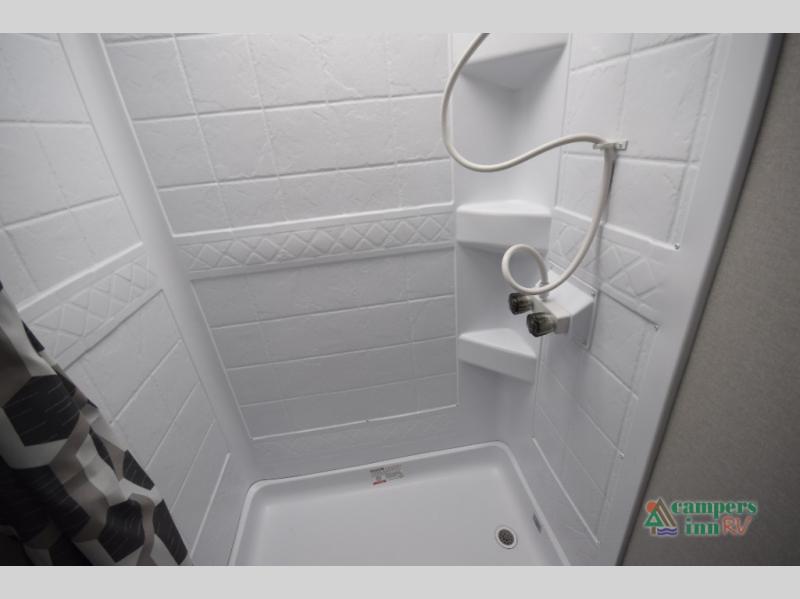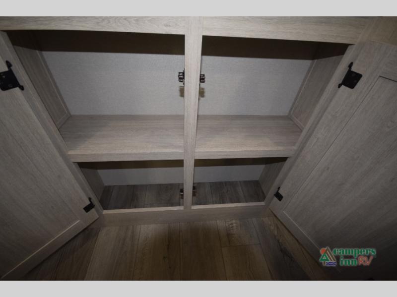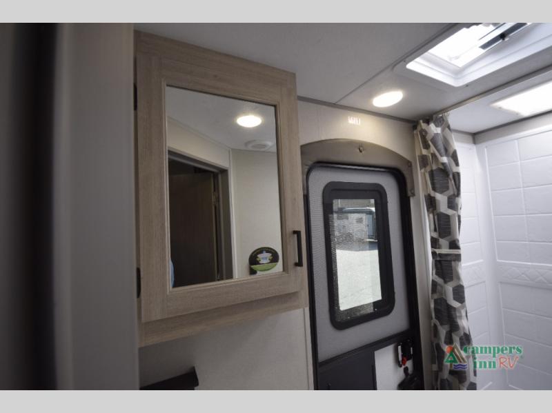 Need to dash in from the campfire? The rear door leads straight into the full bathroom, keeping dirt out of the main living space. The second entry brings you into the heart of the trailer, near the living and kitchen area.