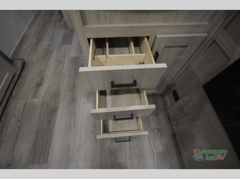 The Catalina Legacy Edition is built tough with a cambered structural steel I-beam frame, R-7 insulation, and a fully sealed, enclosed underbelly to extend your camping season. Other high-end touches include: