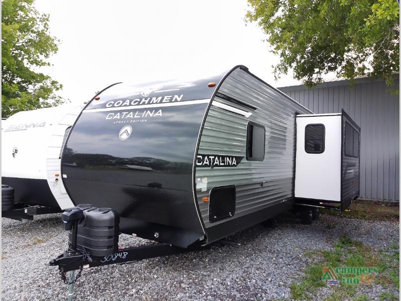 Each Catalina Legacy travel trailer by Coachmen is constructed with a cambered structural steel I-beam frame for added strength and support, plus an enclosed and fully sealed corrugated underbelly to extend your camping season. There is also a seamless Alpha roof membrane, R-7 insulation throughout, full length frame outriggers, plus many more durable construction materials. You will love the 6' 9" interior height, along with Congoleum woodplank linoleum flooring, seamless Thermofoil countertops, and hard valance window treatments. Choose a Catalina Legacy today!