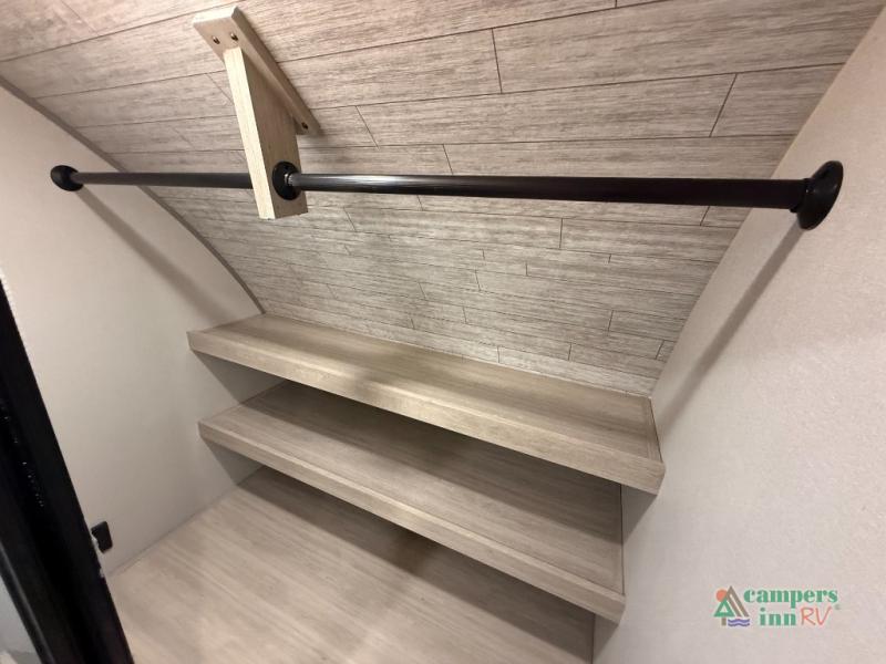 Bedroom has an RV queen bed.