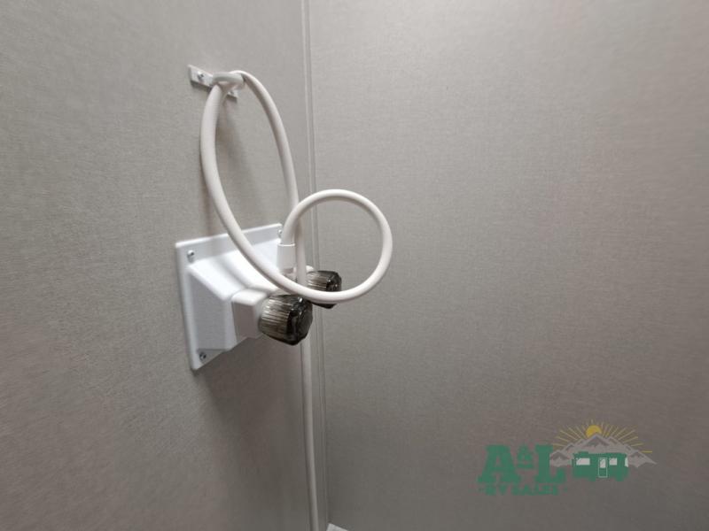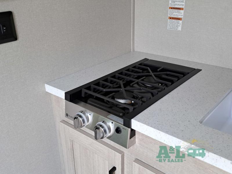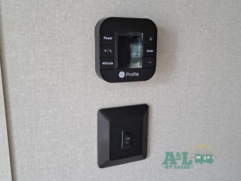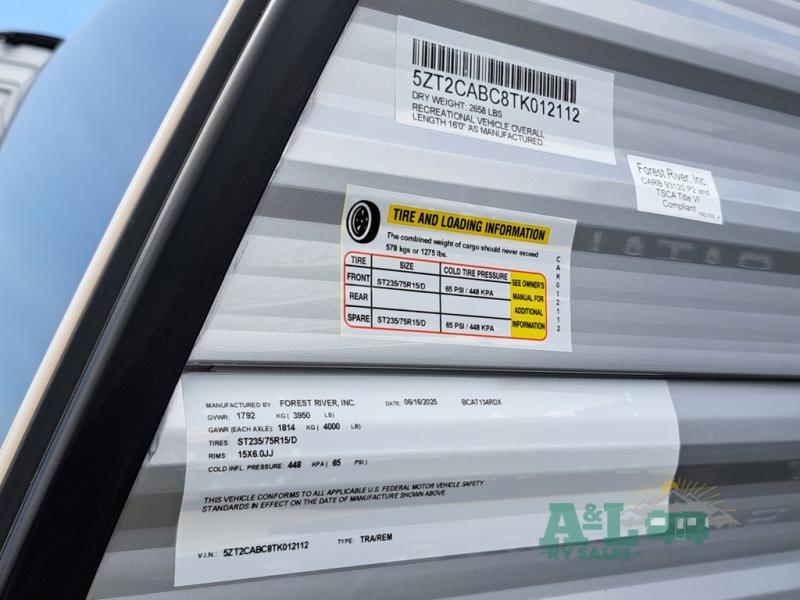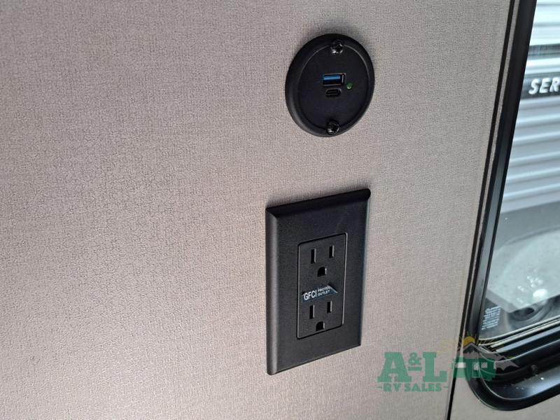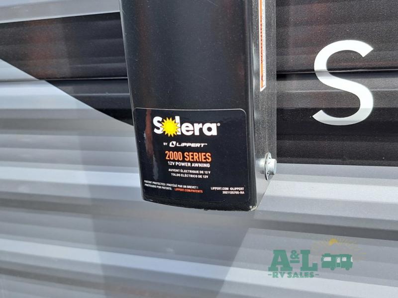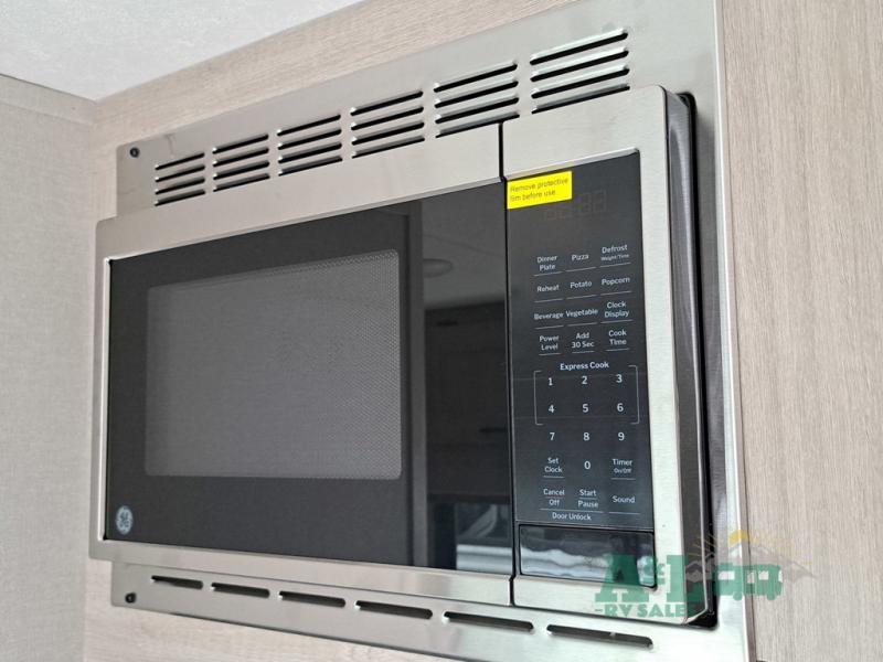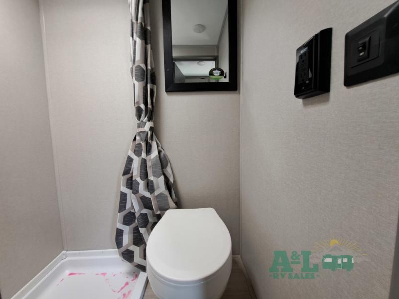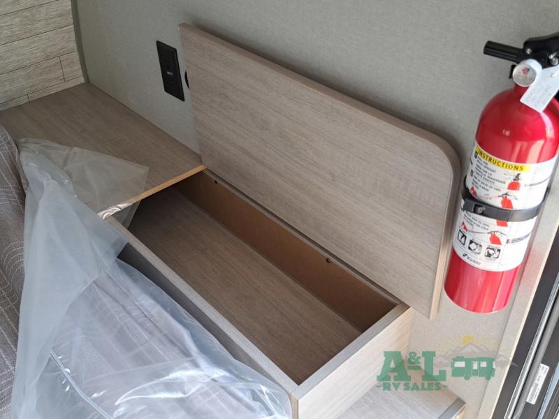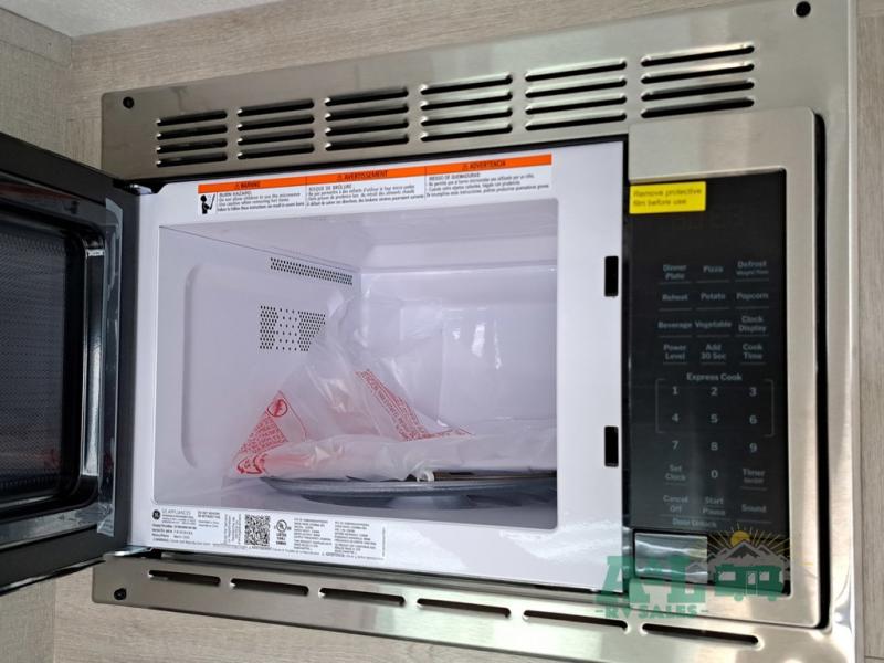 Lightweight camping is easier than you think with this travel trailer in tow! The front 54" x 74" queen bed will provide a great night's rest each night, while your overnight guest takes the booth dinette. There is a handy shelf above the front bed for your belongings plus additional bedroom storage. A private bath includes a 24" x 32" shower and a toilet with a mirror behind it so you can freshen up each day. You'll also find a two burner cooktop and microwave oven to make meals each day plus a 3.3 cu. ft. 12V refrigerator for food storage!