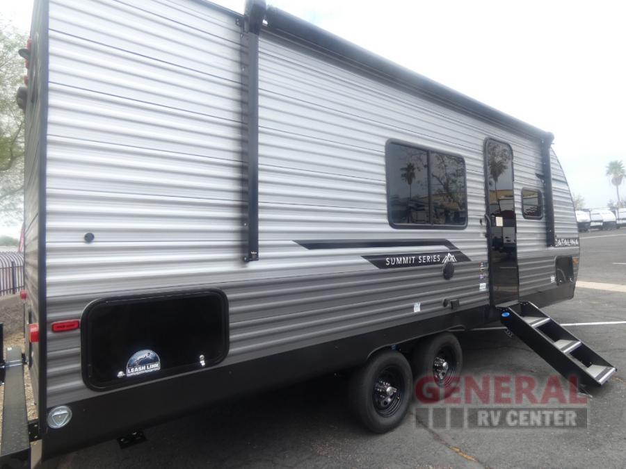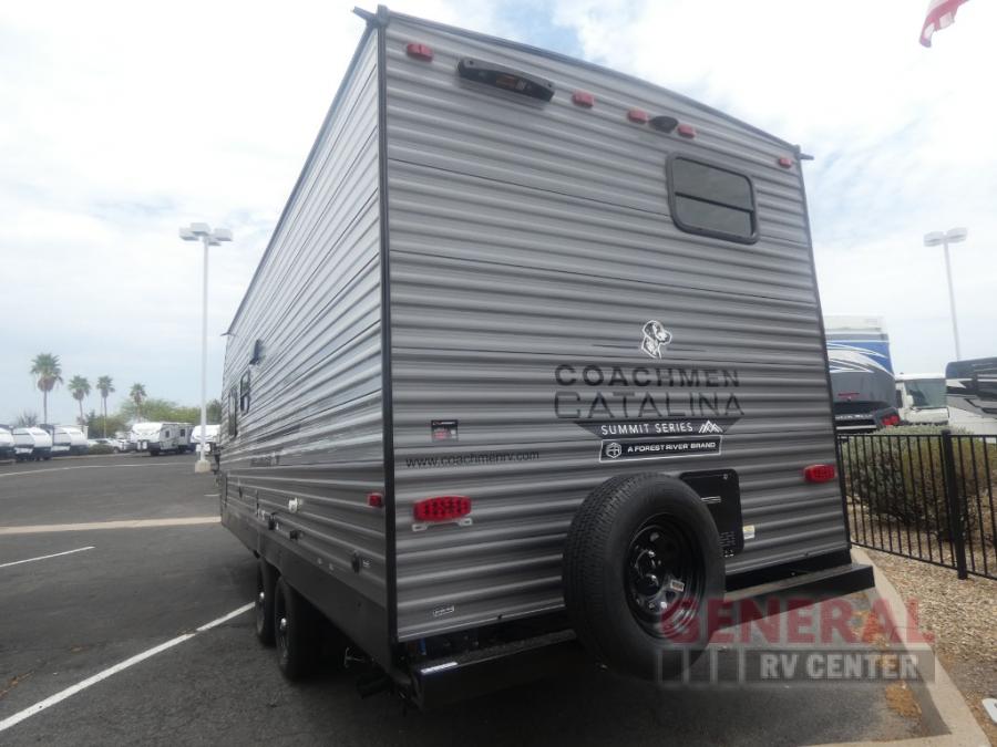 With any Catalina Summit Series 8 by Coachmen you will enjoy an affordable travel trailer packed with at-home comforts! The solid construction includes a Norco electromagnetic powder coated chassis, a seamless Alpha roof membrane, and full length frame outriggers for maximum support and durability. EZ lube axles with leaf spring suspension and self adjusting brakes provide smooth towing from home to campground, and the premium exterior graphics package is sure to turn heads as you travel down the highway. You will love the features included, such as a JBL Aura Cube media center, magnetic baggage door latches, 4,000 lumen interior touch lighting, and the list goes on!