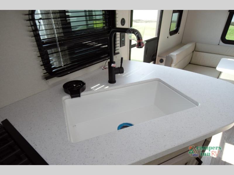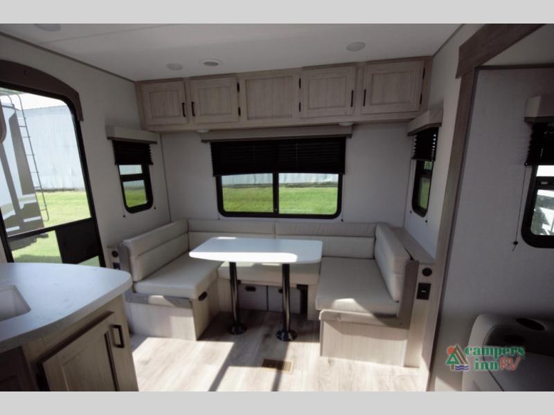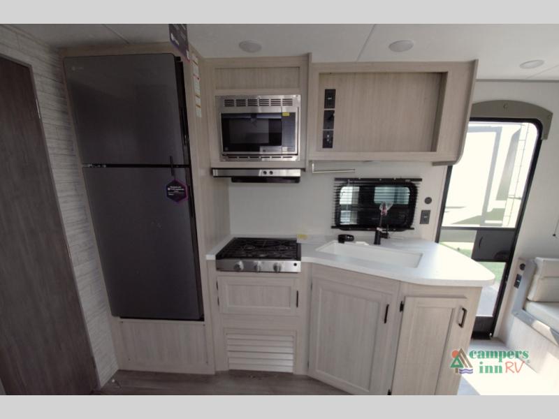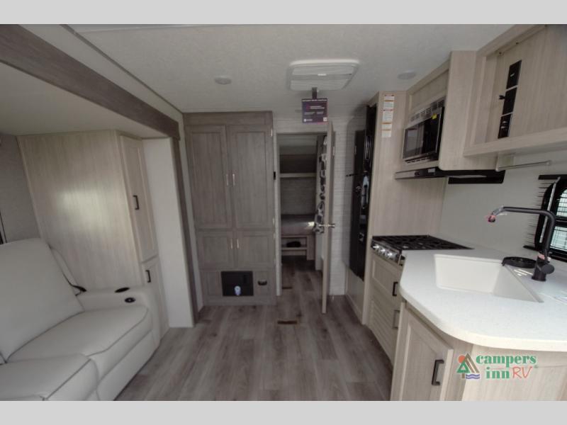 The Catalina Summit Series 8 231MKS offers a smart floorplan with a spacious walk through bath connecting the private front bedroom to the living area. This setup adds convenience and privacy whether you are relaxing or hosting overnight guests.
