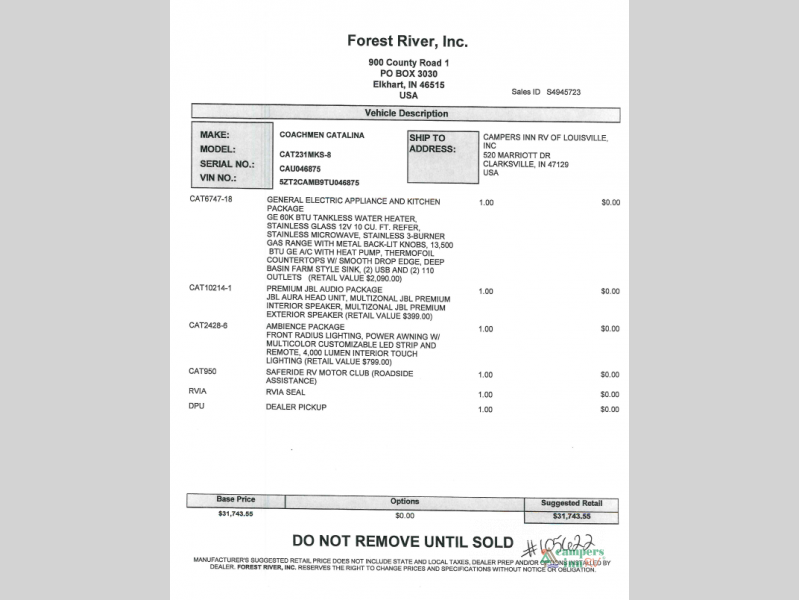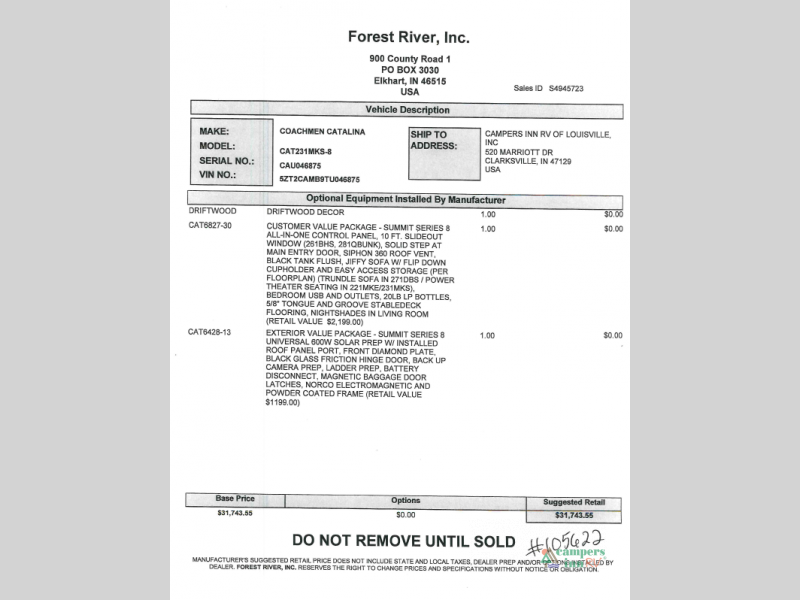 Call Campers Inn RV of Louisville at 812-282-7718 to schedule a walkthrough or learn more about the Catalina Summit Series 8 231MKS.