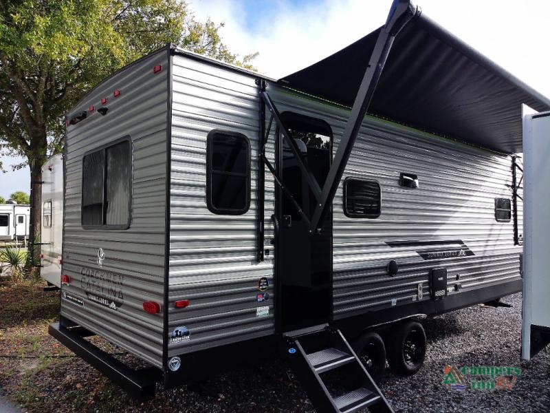 With any Catalina Summit Series 8 by Coachmen you will enjoy an affordable travel trailer packed with at-home comforts! The solid construction includes a Norco electromagnetic powder coated chassis, a seamless Alpha roof membrane, and full length frame outriggers for maximum support and durability. Dexter EZ lube axles with leaf spring suspension and self adjusting brakes provide smooth towing from home to campground, and the premium exterior graphics package is sure to turn heads as you travel down the highway. You will love the features included, such as a JBL Aura Cube media center, magnetic baggage door latches, 4,000 lumen interior touch lighting, LCI One Control, and the list goes on!