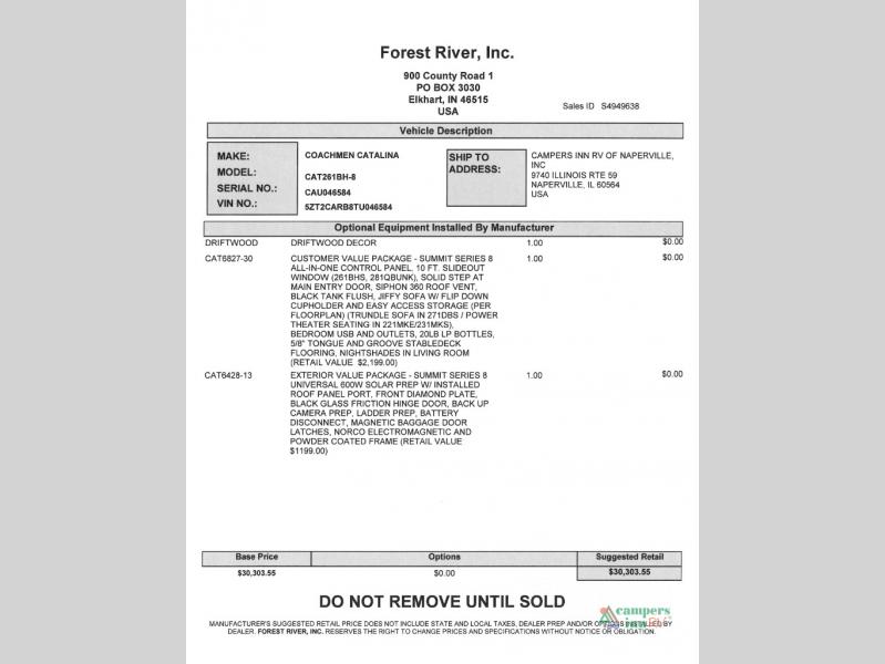 At Campers Inn RV, we combine over 50 years of experience with unbeatable customer service. When you purchase your 2026 Coachmen Catalina Summit Series 8 261BH from us, you receive: