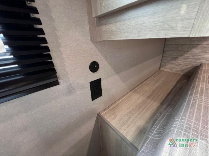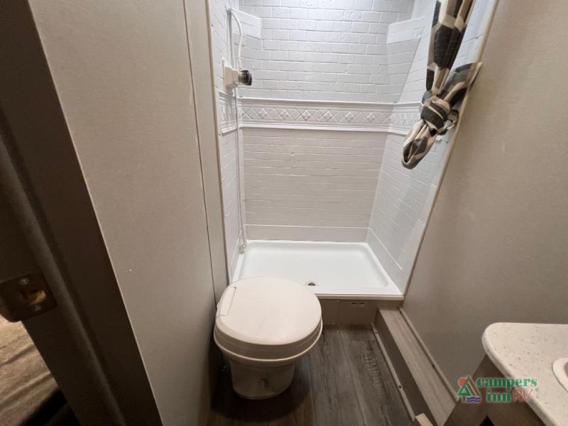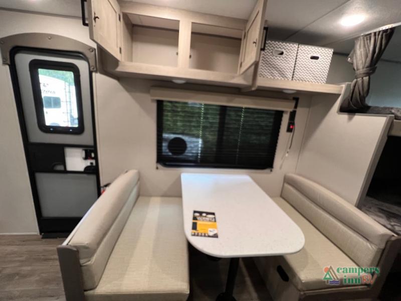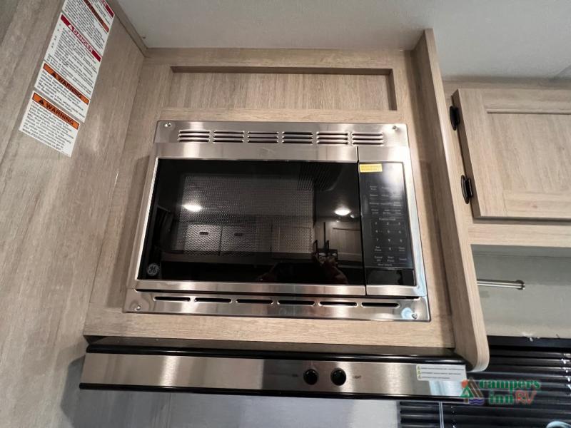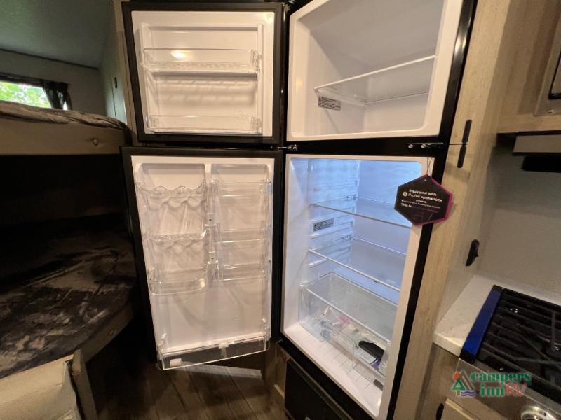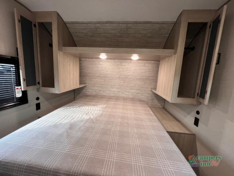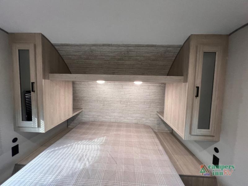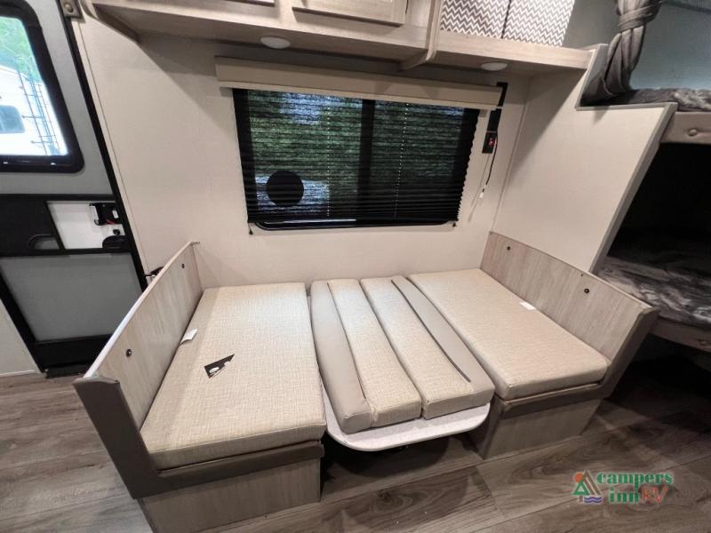 The kids will love their own double-size bunks, perfect for sharing sleepovers with friends or siblings, and the nearby full bathroom adds convenience for the whole family. This travel trailer balances comfort and practicality, making every camping trip memorable.