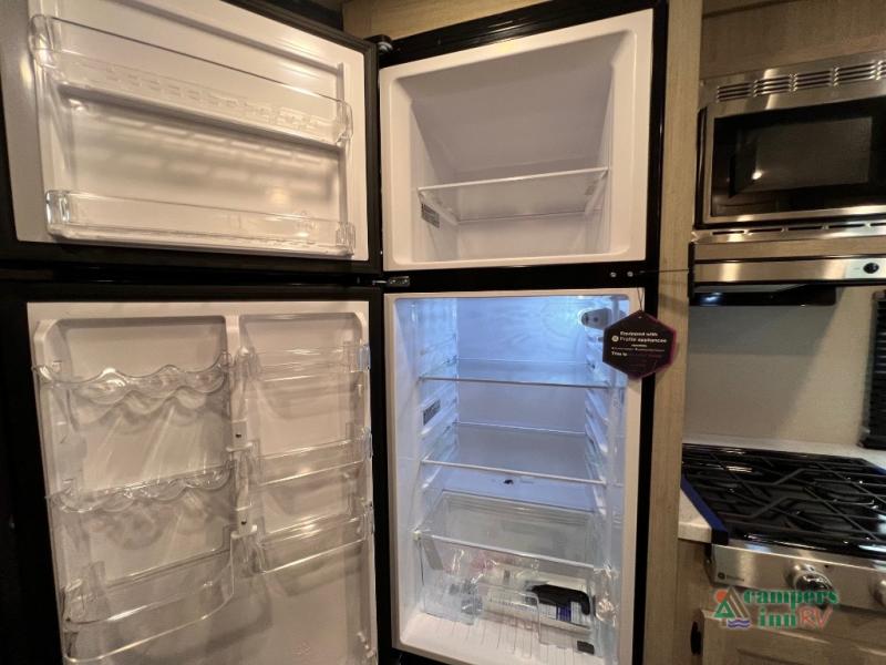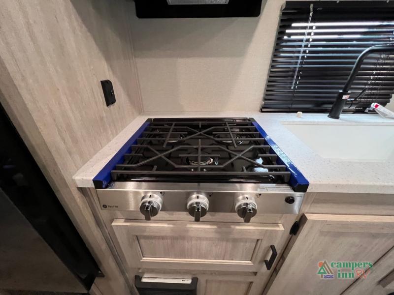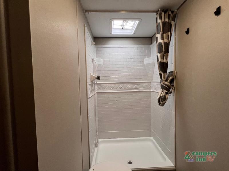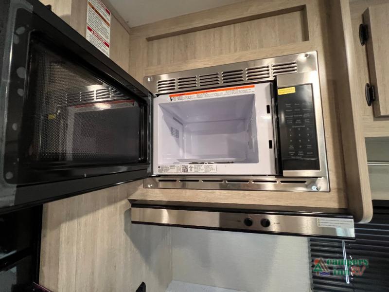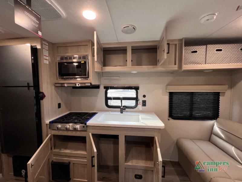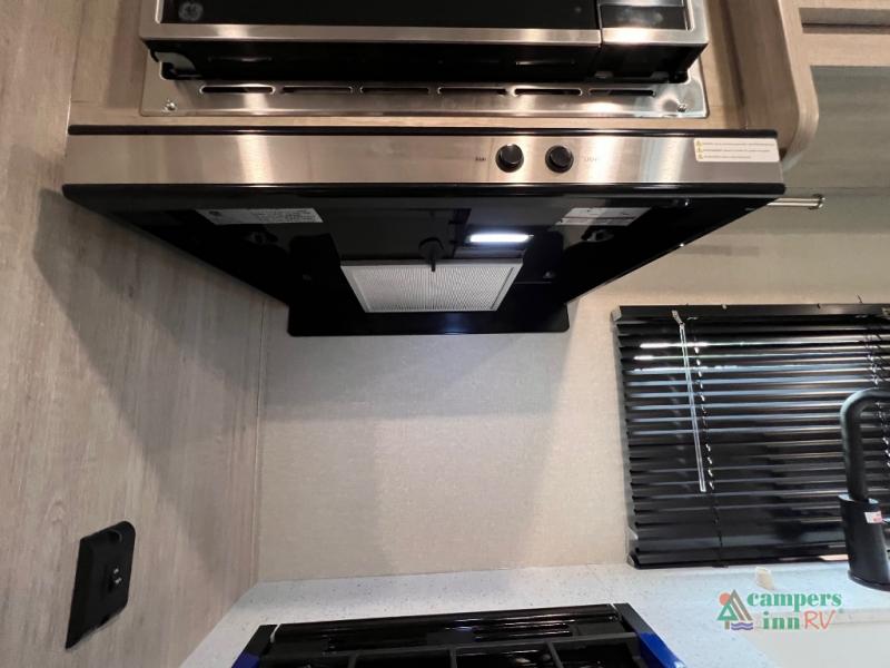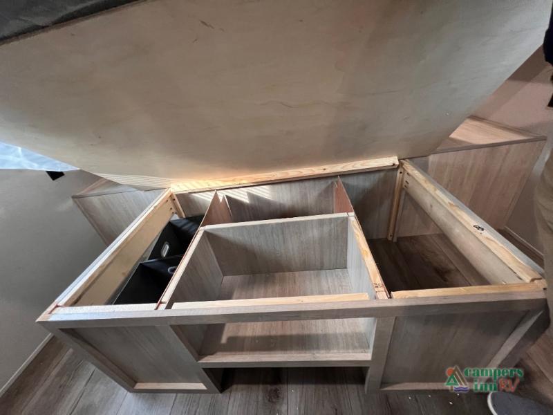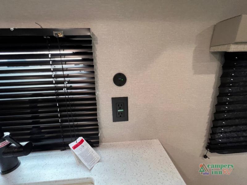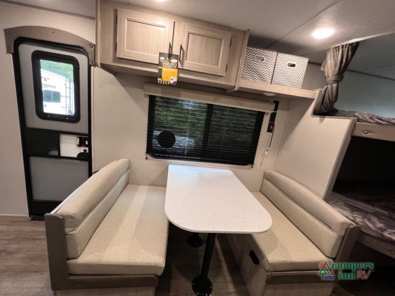The kids will love their own double-size bunks, perfect for sharing sleepovers with friends or siblings, and the nearby full bathroom adds convenience for the whole family. This travel trailer balances comfort and practicality, making every camping trip memorable.
