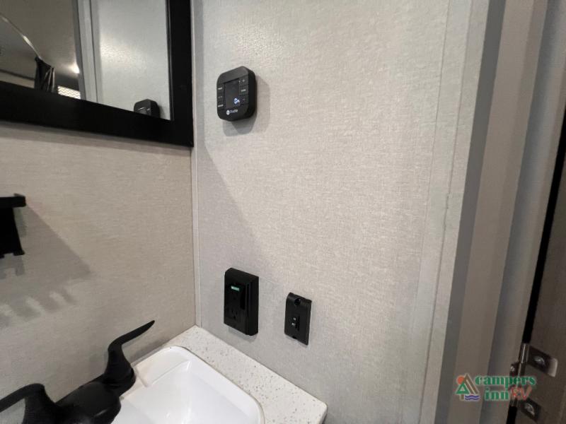 Stand out at the campground with the premium exterior graphics package that’s sure to turn heads wherever you go. Inside, modern amenities include the JBL Aura Cube media center for entertainment, magnetic baggage door latches for easy storage access, and 4,000 lumen interior touch lighting to brighten your living space. The innovative LCI One Control system simplifies managing your trailer’s key functions, putting convenience at your fingertips.