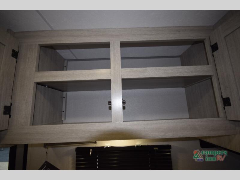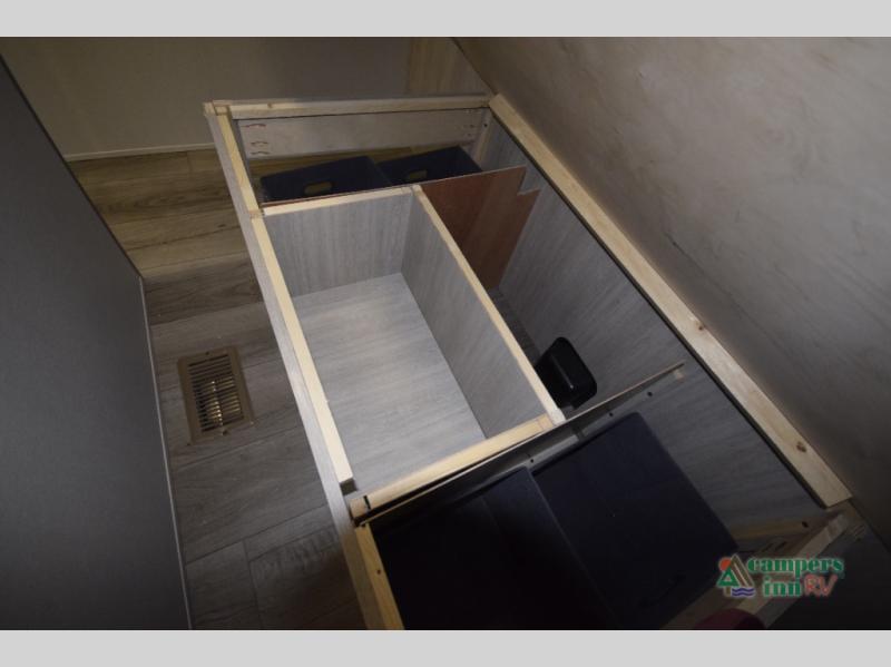 Kids will love their own space in the 46" x 74" double-size bunk beds, complete with interior storage underneath for all their gear and toys. Meanwhile, parents can retreat to the private front bedroom, featuring a cozy 60" x 74" queen bed and space to unwind after a long day outdoors.