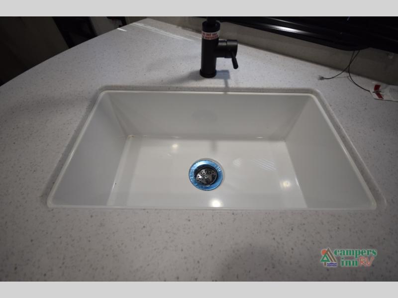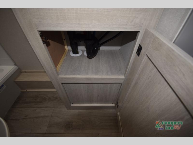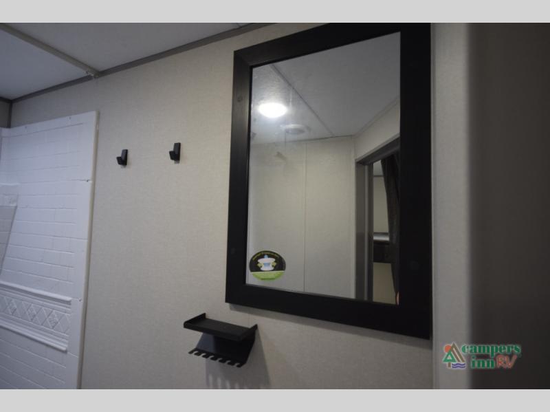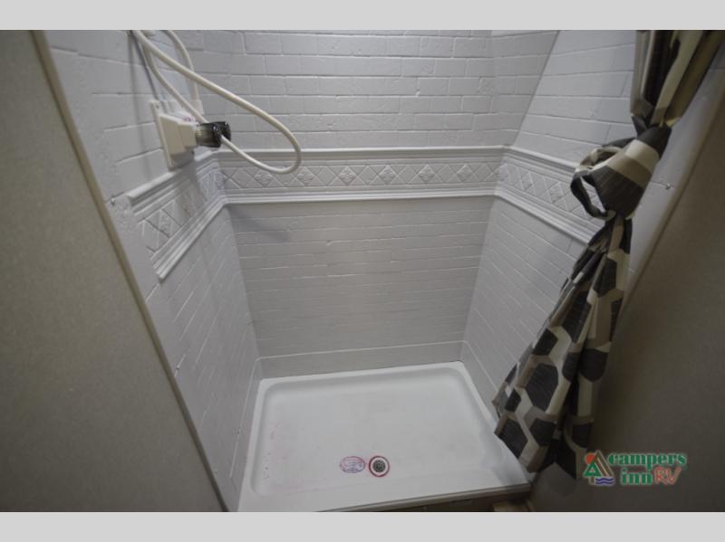 The rear corner bathroom makes freshening up easy, with a tub/shower combo and mirror to help you get ready for the day’s adventures. After a morning hike or afternoon swim, gather around the booth dinette for meals, games, or planning your next destination.