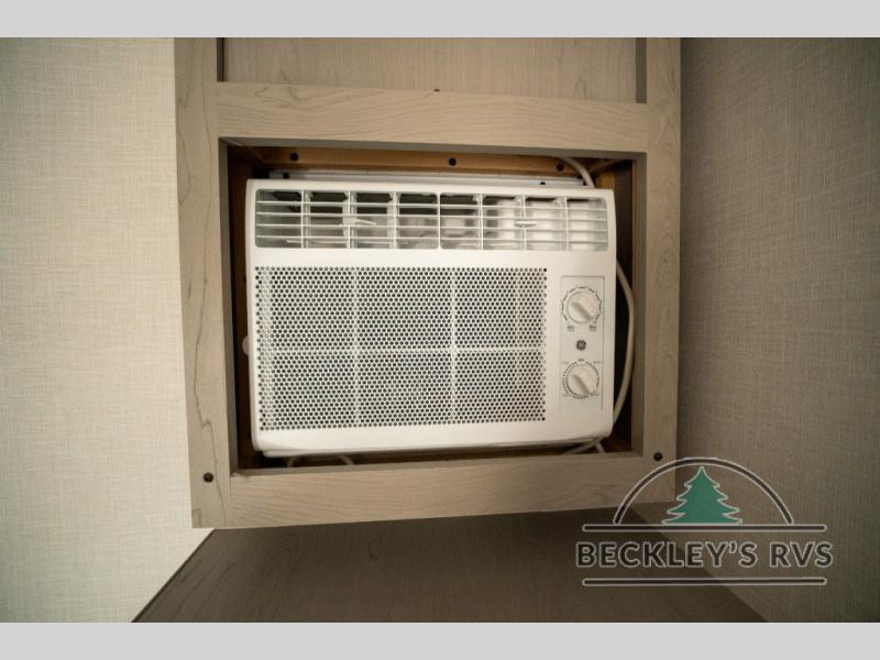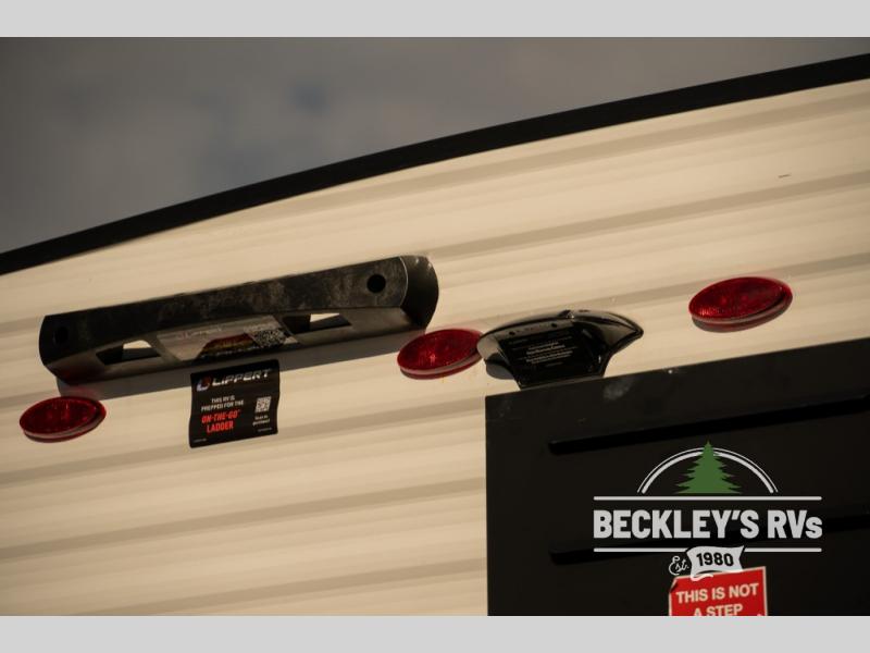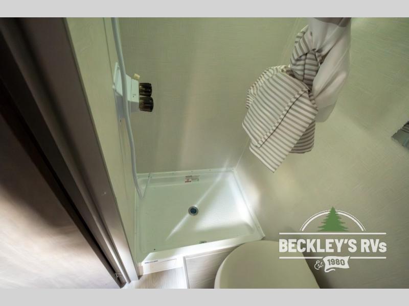 Lightweight camping with at-home comforts is possible with this travel trailer in tow! Once you arrive at the campground, you can unload the exterior storage, put out the awning, then head inside to make lunch on the two-burner cooktop. There is a refrigerator to keep your items fresh, plus a sink with a cup rinse for added convenience. The booth dinette provides a place to dine together, play a board game in the evenings, and let a guest or two little ones sleep on. You'll have the front 54" x 74" RV queen bed to yourselves, along with an overhead shelf and bedroom storage for your things. And don't overlook the private bath with a toilet and 24" x 32" shower!