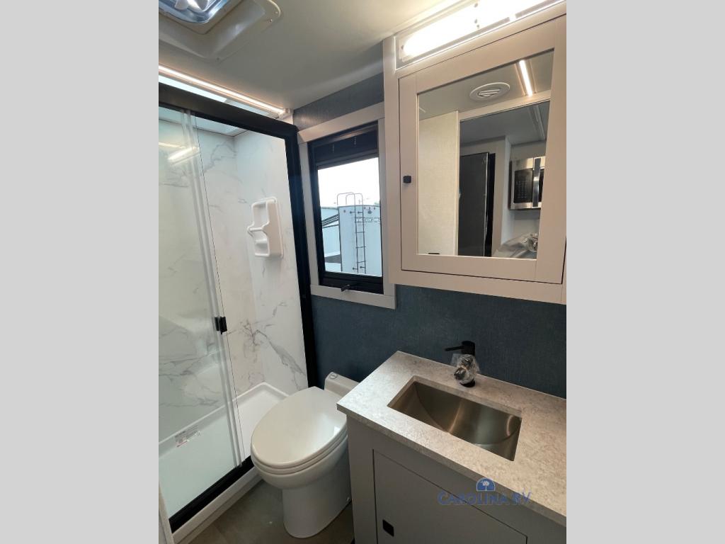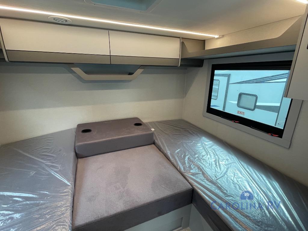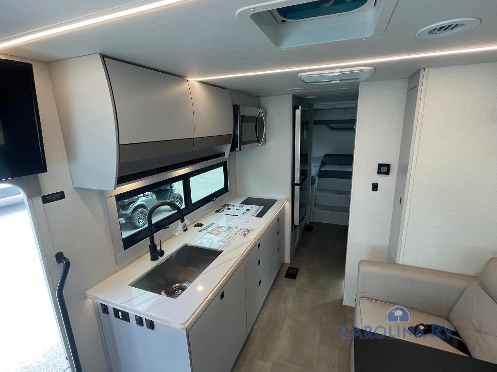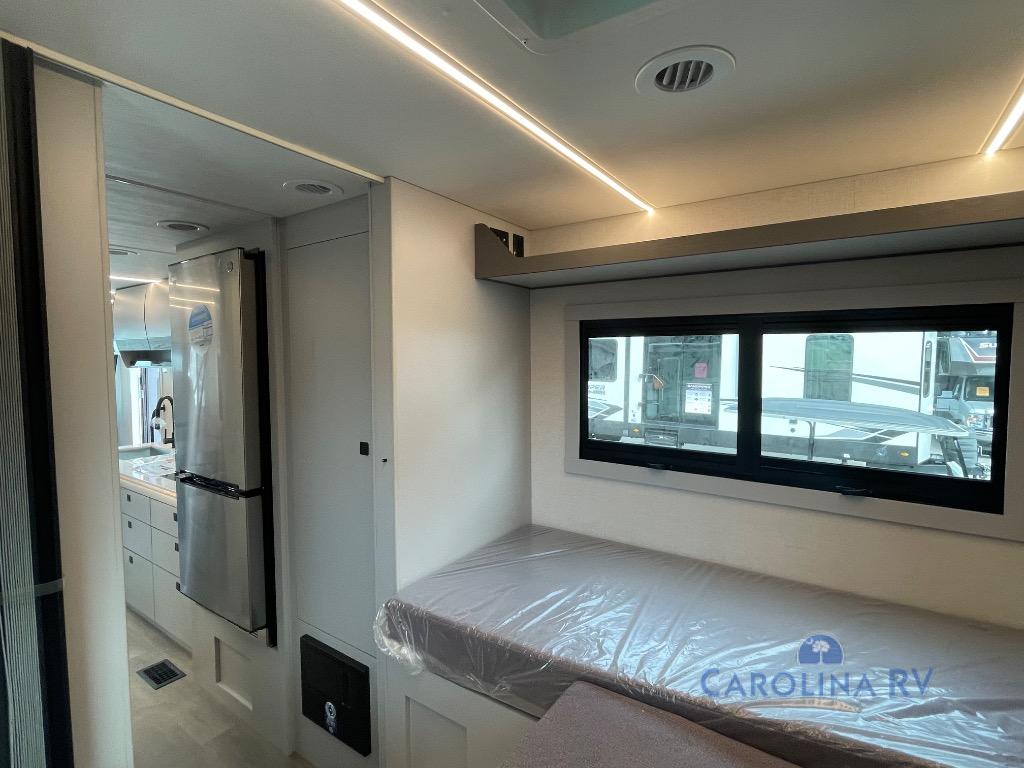 This motorhome was awarded 2025 RV of the Year- Type A Motorhome- Gas by RV News! You will find versatility with the rear twin beds that can convert into a 95" x 74" bed with an optional 32" TV for movies in bed, and a sofa with a sleeper option or you can switch it out for the optional recliners/dinette. The chef can prepare their best home cooked meals with the induction cooktop and stainless steel double door refrigerator to keep your perishables fresh. The full bathroom has a 24" x 36" shower with a skylight above for added natural lighting. There are plenty of overhead cabinets throughout for your items to stay out of the way, plus a 32" TV above the entrance door. You even have an exterior 95" x 38" x 37" mega pass-through storage area for your outdoor gear!