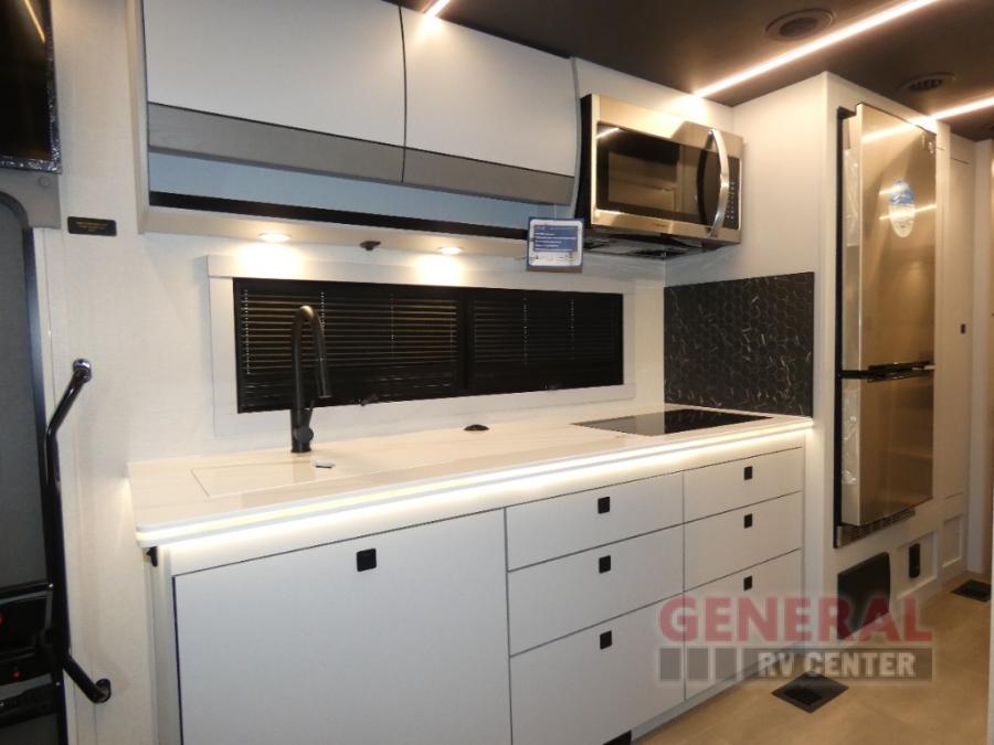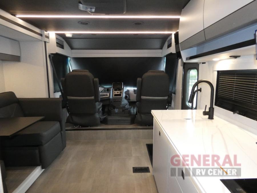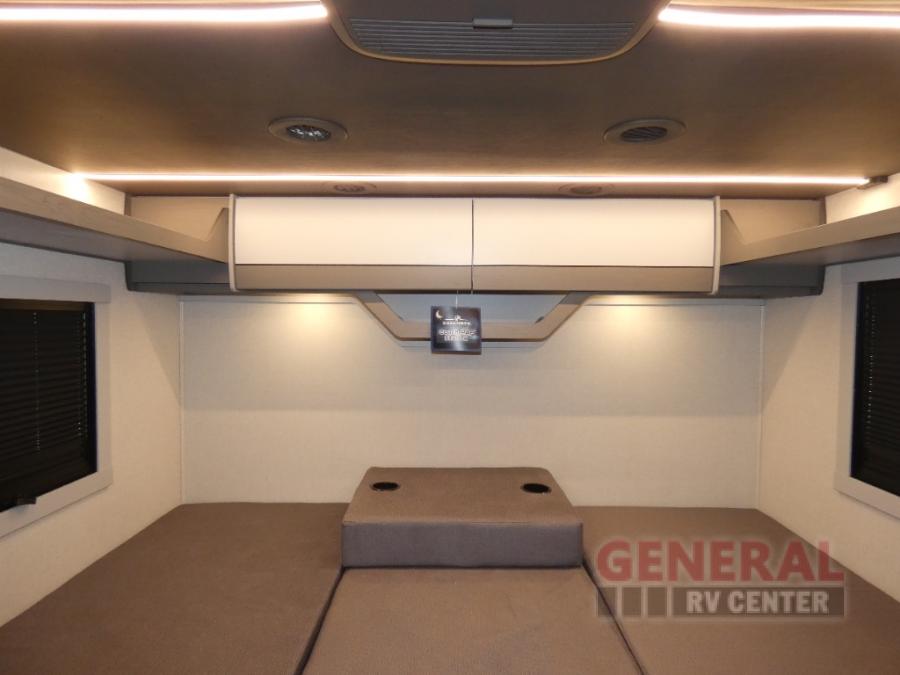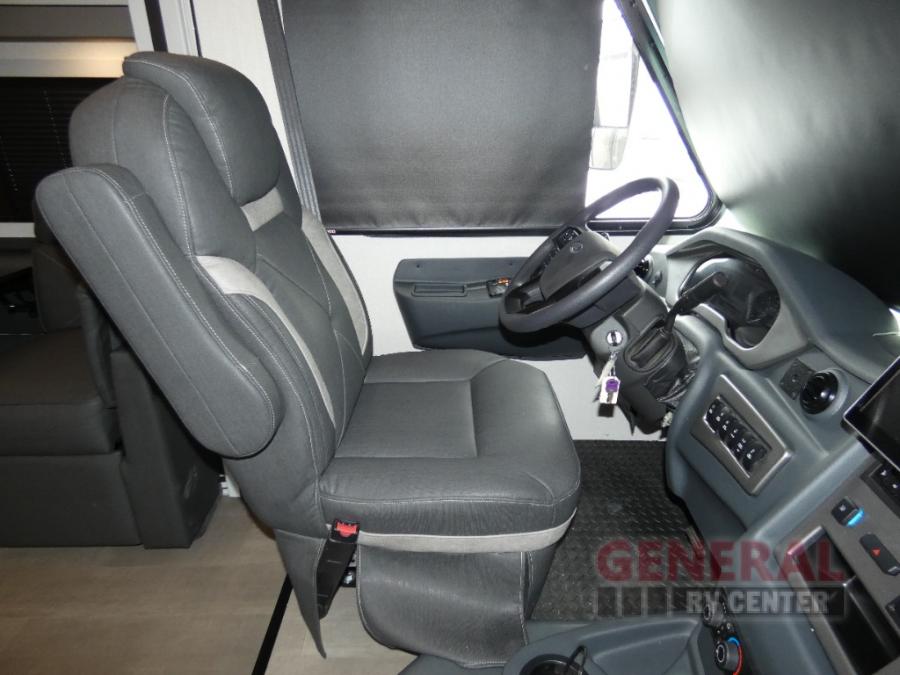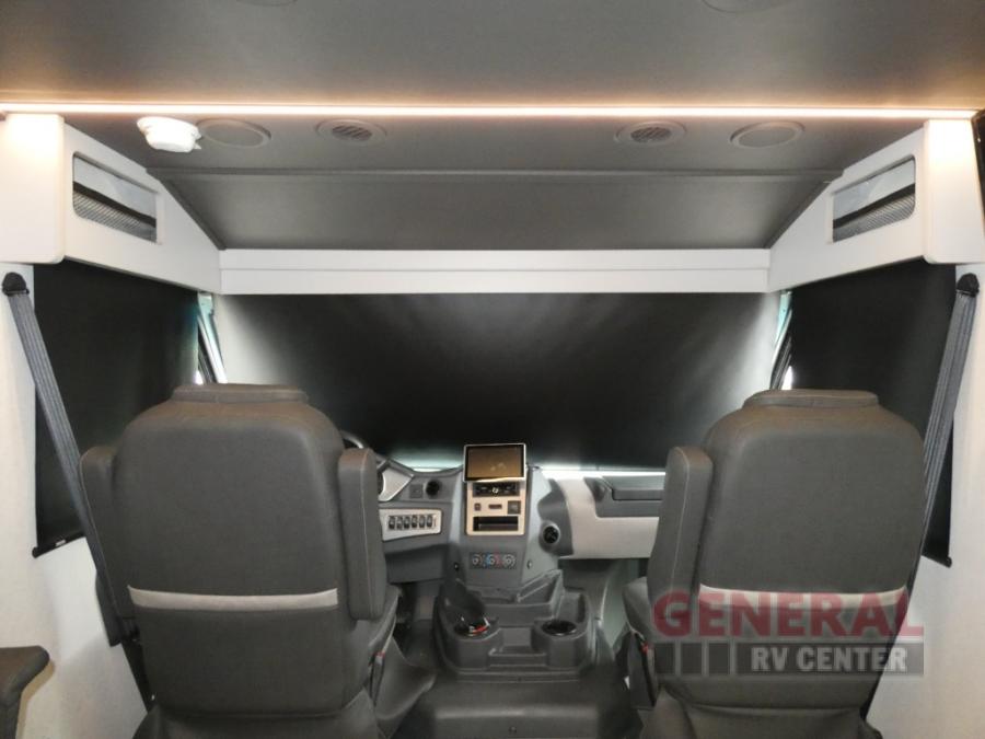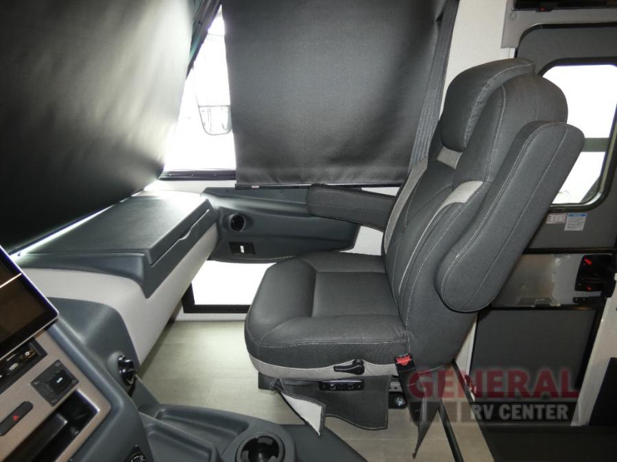 You're sure to have a great time in this sleek motorhome for two! Once you arrive at your destination, the reclining/swivel captain's seats can become a part of the living room where you'll also find a slide out with recliners/dinette. And if you're needing more sleeping space, just choose the optional sofa with a sleeper in place of the dinette! You can then make lunch on the induction cooktop and grab a cold drink from the stainless steel double door refrigerator. The full bath includes a glass shower door, an on-demand water heater, and a shower skylight to let natural light in. Head to the rear bedroom where you can get a great night's rest on the two twin beds with a nightstand in between to set your phone and book on. There is also a 32" bedroom TV so you can watch movies in bed!
