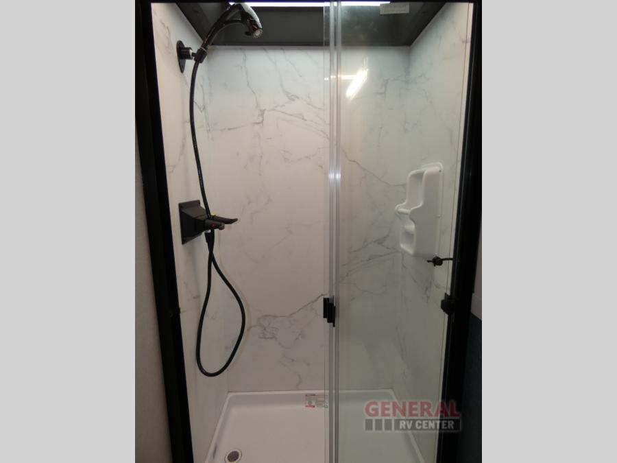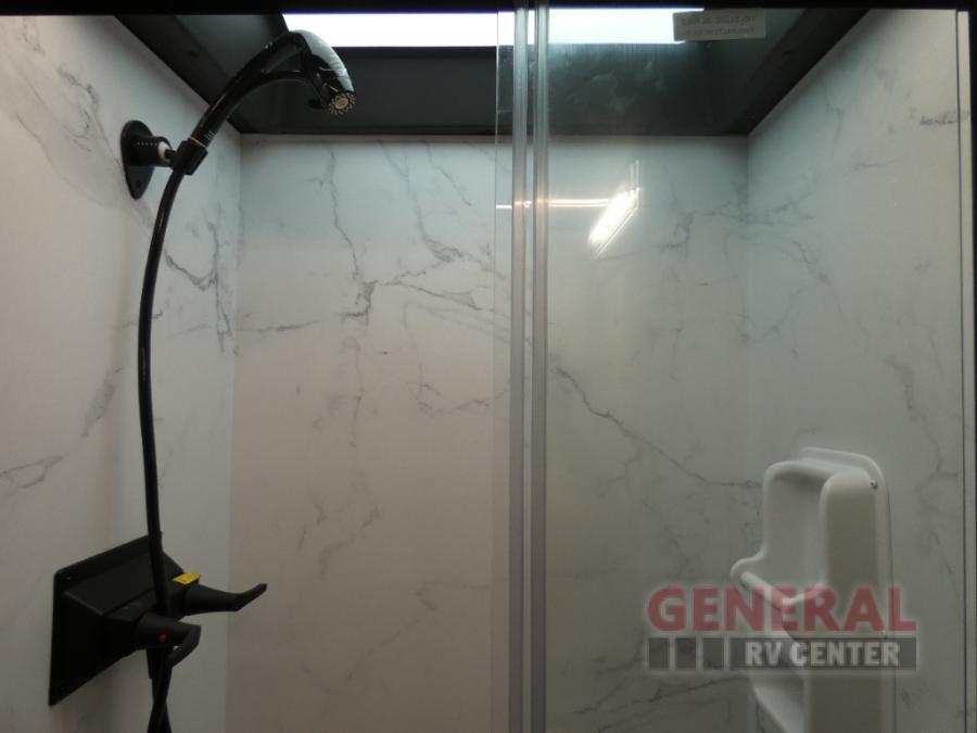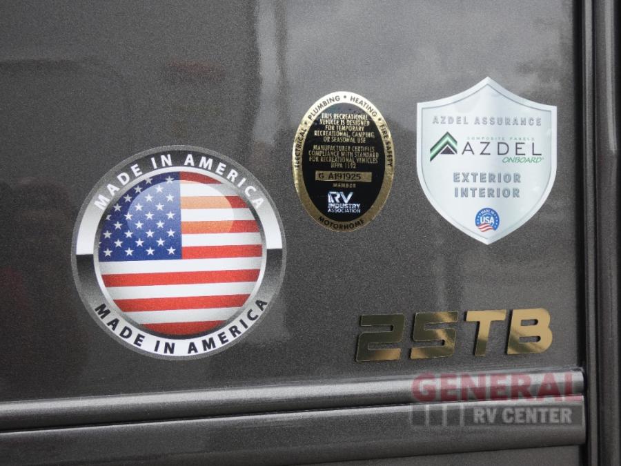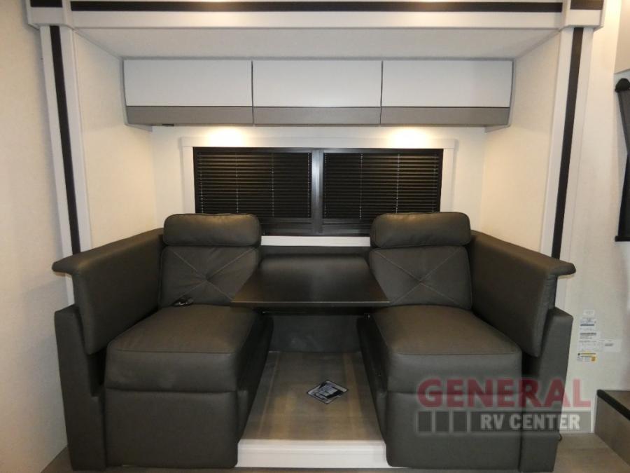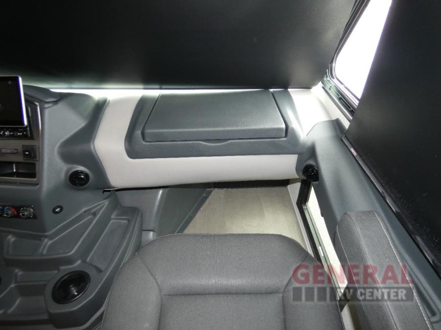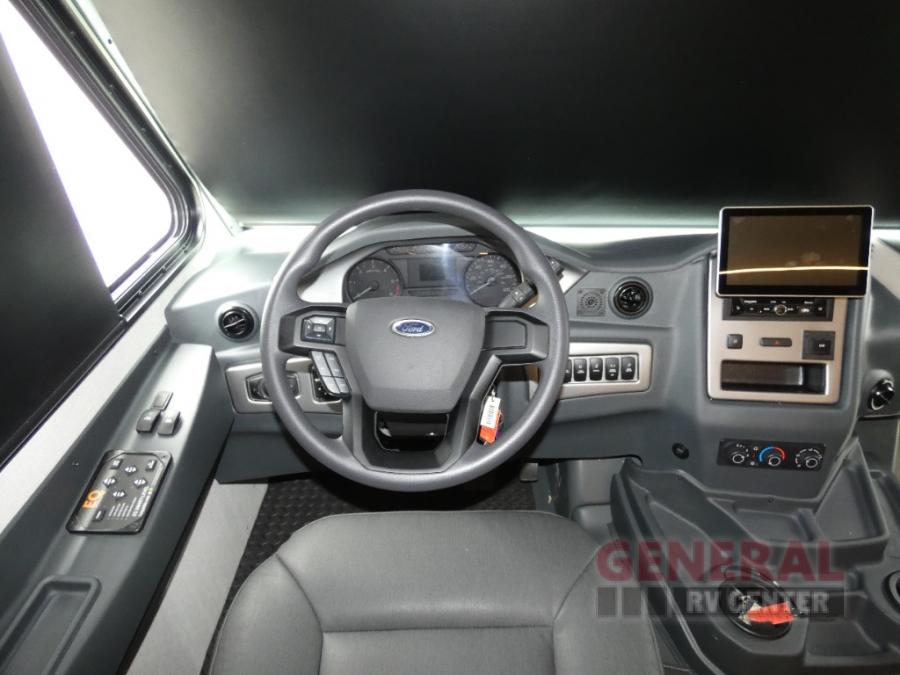 You're sure to have a great time in this sleek motorhome for two! Once you arrive at your destination, the reclining/swivel captain's seats can become a part of the living room where you'll also find a slide out with recliners/dinette. And if you're needing more sleeping space, just choose the optional sofa with a sleeper in place of the dinette! You can then make lunch on the induction cooktop and grab a cold drink from the stainless steel double door refrigerator. The full bath includes a glass shower door, an on-demand water heater, and a shower skylight to let natural light in. Head to the rear bedroom where you can get a great night's rest on the two twin beds with a nightstand in between to set your phone and book on. There is also a 32" bedroom TV so you can watch movies in bed!