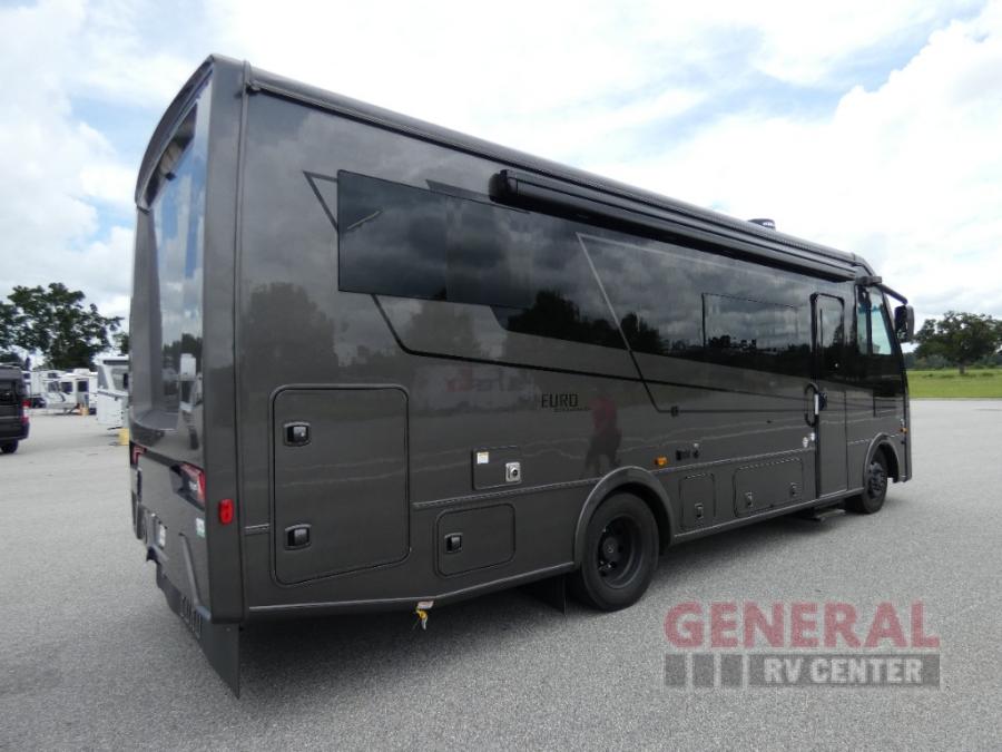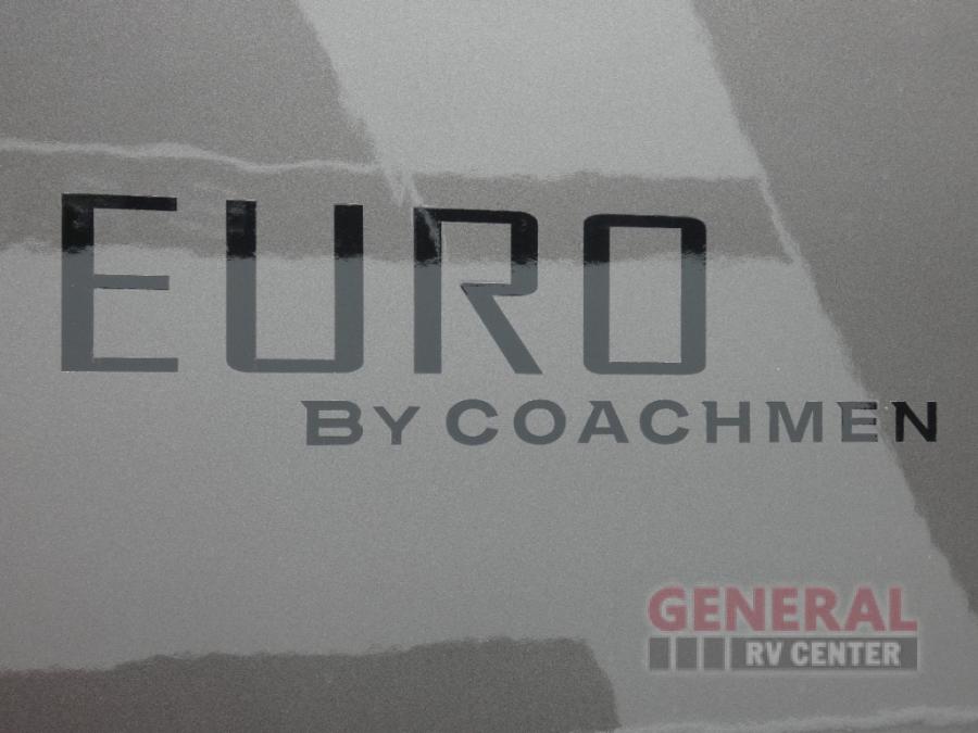 Enjoy the compact and stylish look of a European coach with the Euro Class A gas motorhome by Coachmen RV! There is a crowned, laminated fiberglass roof, a fiberglass front cap, plus a Ford F53 7.3L V8 chassis that will add to the life of your RV. The driver will love having a back up monitor with side view cameras, and the passenger can use the computer workstation to work remotely if needed. There is also traction control, cruise control, plus a tilt and telescoping steering wheel that will make the drive that much easier. An exterior propane hook-up also comes standard, along with radius trunk doors for your gear, and automatic leveling jacks to be set up in no-time. Head inside to find modern features, like the stainless steel appliances, square windows with day/night shades, and the list goes on!