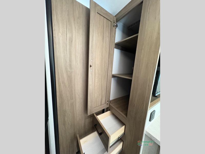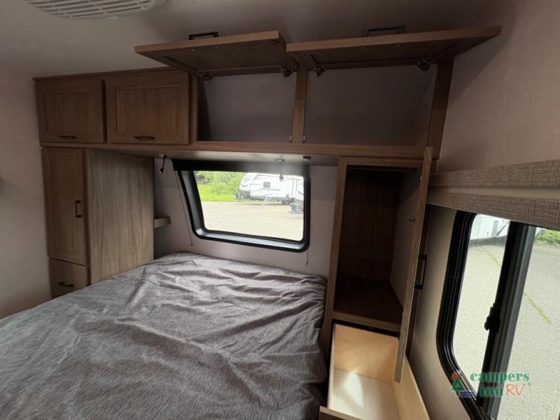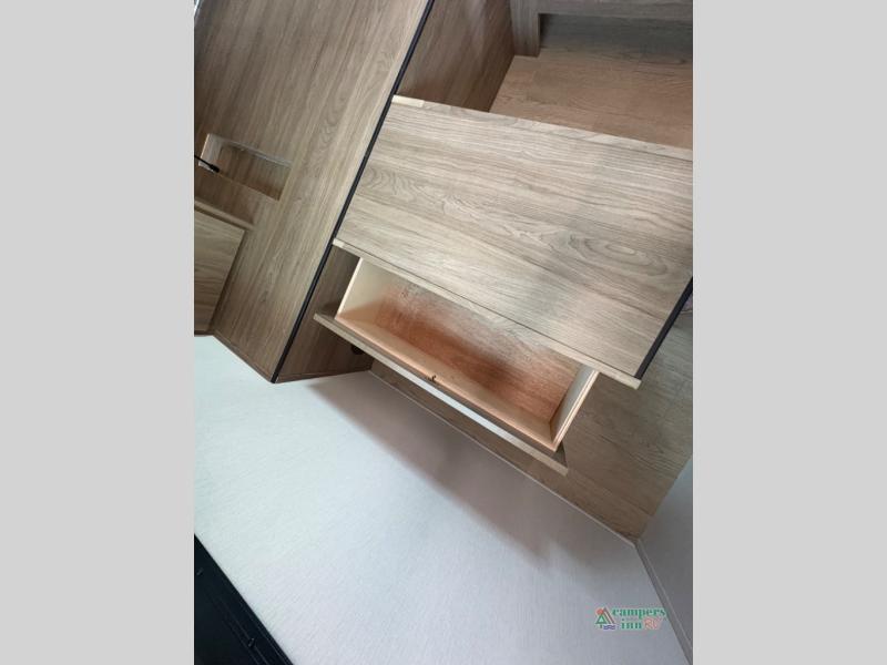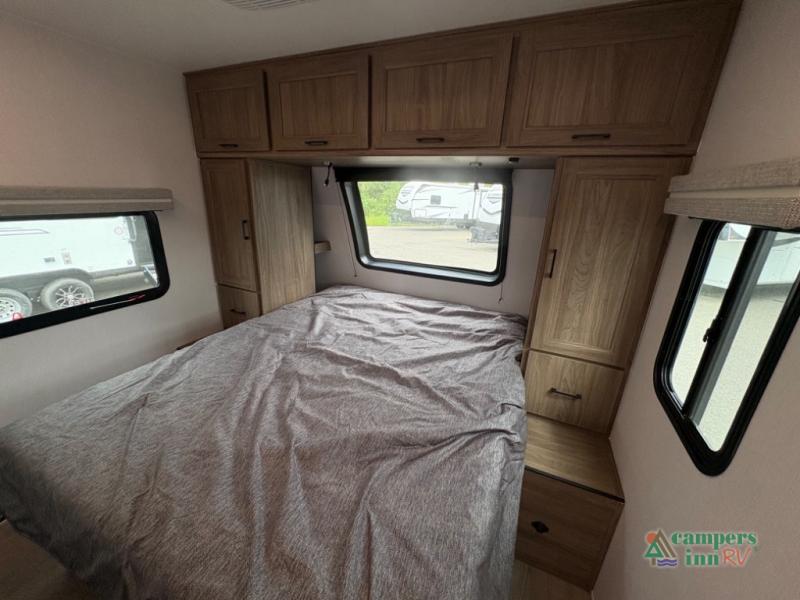 Front Private Bedroom: Features a queen-size bed with vaulted under-bed storage and dual wardrobes.