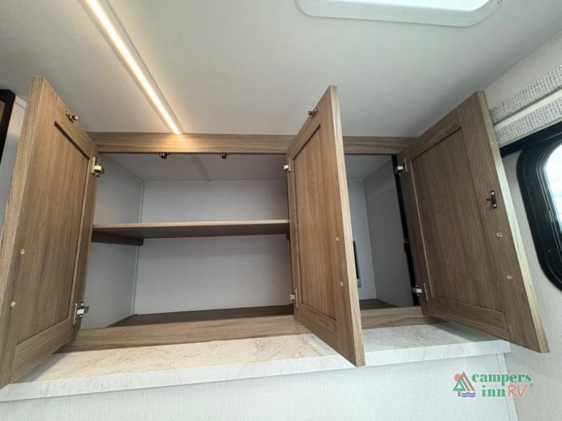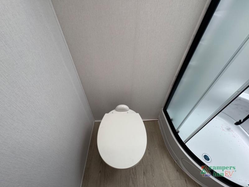 Construction: Built with vacuum-bonded walls featuring Azdel composite panels, a 3/4 gel-coated fiberglass cap with an automotive glass windshield, and a heated enclosed underbelly.