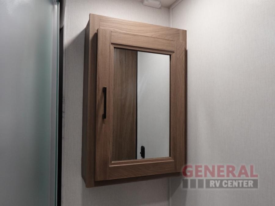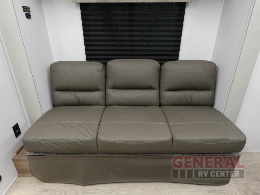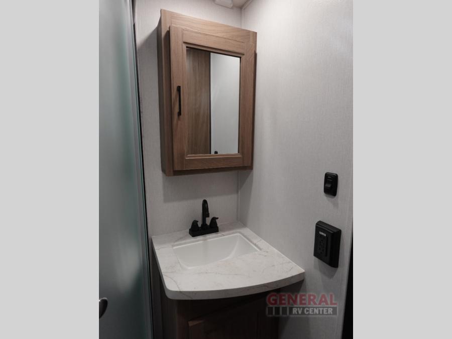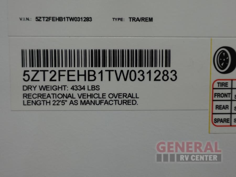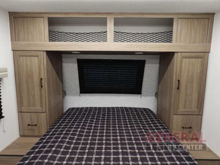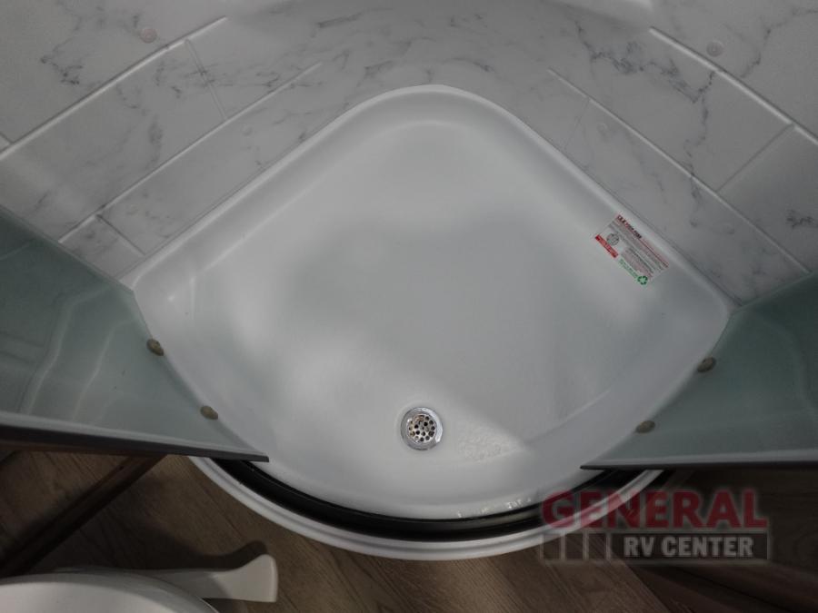 You'll love spending time at the campground in this single slide out travel trailer! The 60" x 80" front queen bed includes vaulted underbed storage to keep your luggage or extra blankets out of the way, plus there are dual bedside wardrobes for your clothes. A sofa with a free-standing table will provide a place to relax and dine, and the full kitchen includes a dual-burner cooktop and microwave to cook meals each day. This unit also features a rear corner bath with a 32" radius shower, a toilet, sink, and bath linen closet for clean towels!
