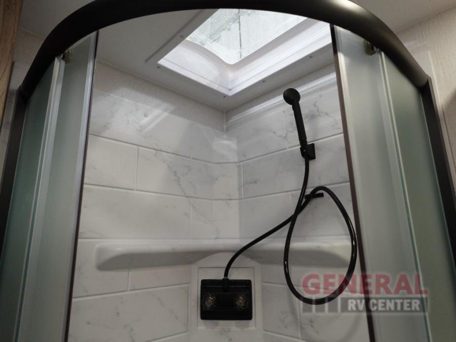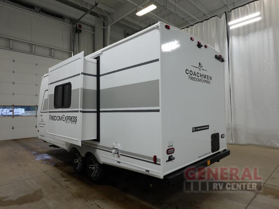 With any Freedom Express Select travel trailer by Coachmen you will find an alumicage construction and vacuum bonded walls with Azdel composite for a trailer made to last. These Select value models come standard with a Bluetooth interior speaker, night shades, and wear-resistant vinyl flooring throughout. You will appreciate the power tongue jack, as well as the Tufflex PVC roof and heated and enclosed underbelly help with protection and climate control. A 15K BTU roof A/C will keep you comfortable, and the tankless water heater will provide endless hot showers!
