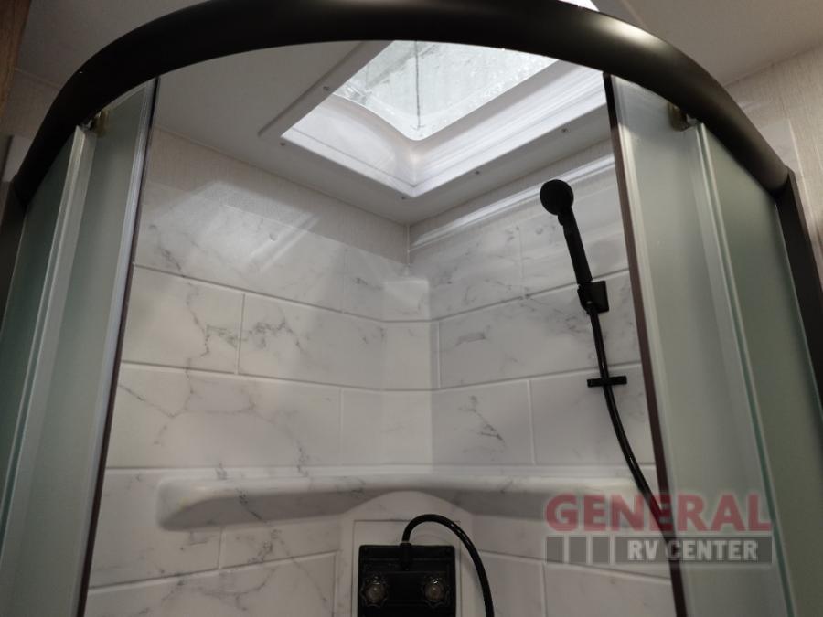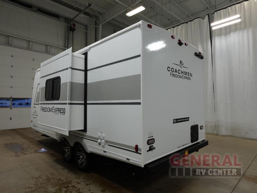 With any Freedom Express Select travel trailer by Coachmen you will find an alumicage construction and vacuum bonded walls with Azdel composite for a trailer made to last. These Select value models come standard with a Bluetooth interior speaker, night shades, and wear-resistant vinyl flooring throughout. You will appreciate the power tongue jack, as well as the Tufflex PVC roof and heated and enclosed underbelly help with protection and climate control. A 15K BTU roof A/C will keep you comfortable, and the tankless water heater will provide endless hot showers!