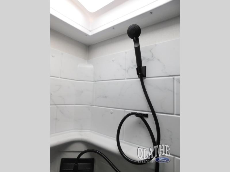 With any Freedom Express Select travel trailer by Coachmen you will find an alumicage construction and vacuum bonded walls with Azdel composite for a trailer made to last. These Select value models come standard with a Bluetooth interior speaker, night shades, and wear-resistant vinyl flooring throughout. You will appreciate the power tongue jack, as well as the Tufflex PVC roof and heated and enclosed underbelly help with protection and climate control. A 15K BTU roof A/C will keep you comfortable, and the tankless water heater will provide endless hot showers!