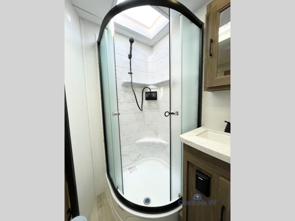 With any Freedom Express Select travel trailer by Coachmen you will find an alumicage construction and two-step vacuum bonded and pinch rolled sidewalls with Azdel interior and exterior for a trailer made to last. These Select value models come standard with a Bluetooth interior speaker, night shades, and wear-resistant vinyl flooring throughout. You will appreciate the power tongue jack, as well as the Dicor Tufflex PVC roof and heated and enclosed underbelly to help with protection and climate control. A GE 15K BTU roof A/C will keep you comfortable, and the suburban tankless water heater will provide endless hot showers!