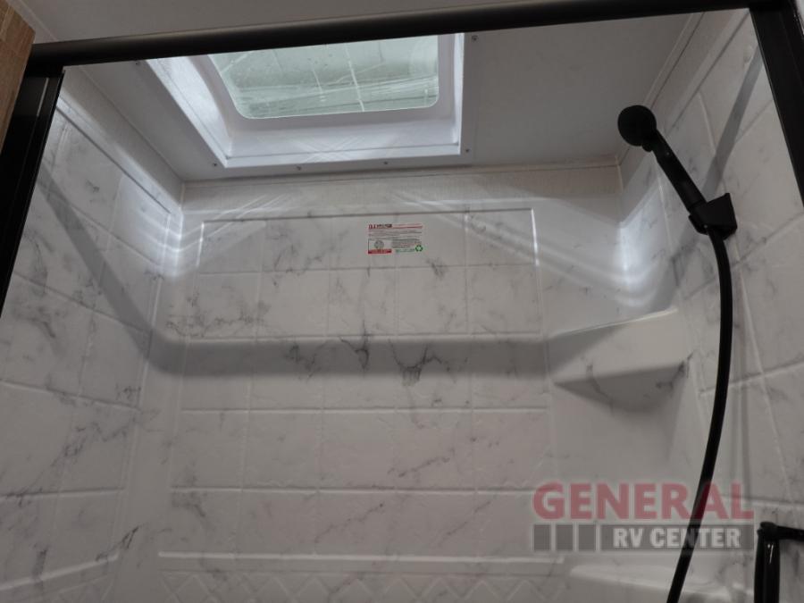 With any Freedom Express Select travel trailer by Coachmen you will find an alumicage construction and vacuum bonded walls with Azdel composite for a trailer made to last. These Select value models come standard with a Bluetooth interior speaker, night shades, and wear-resistant vinyl flooring throughout. You will appreciate the power tongue jack, as well as the Tufflex PVC roof and heated and enclosed underbelly to help with protection and climate control. A 15K BTU roof A/C will keep you comfortable, and the tankless water heater will provide endless hot showers!
