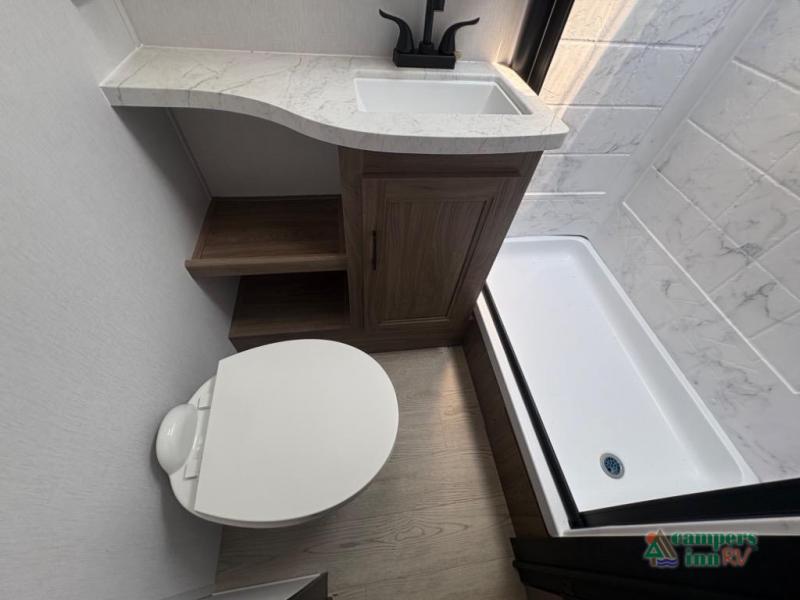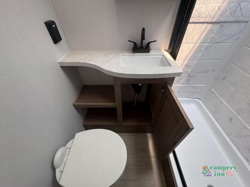 With any Freedom Express Select travel trailer by Coachmen you will find an alumicage construction and two-step vacuum bonded and pinch rolled sidewalls with Azdel interior and exterior for a trailer made to last. These Select value models come standard with a Bluetooth interior speaker, night shades, and wear-resistant vinyl flooring throughout. You will appreciate the power tongue jack, as well as the Dicor Tufflex PVC roof and heated and enclosed underbelly to help with protection and climate control. A GE 15K BTU roof A/C will keep you comfortable, and the suburban tankless water heater will provide endless hot showers!