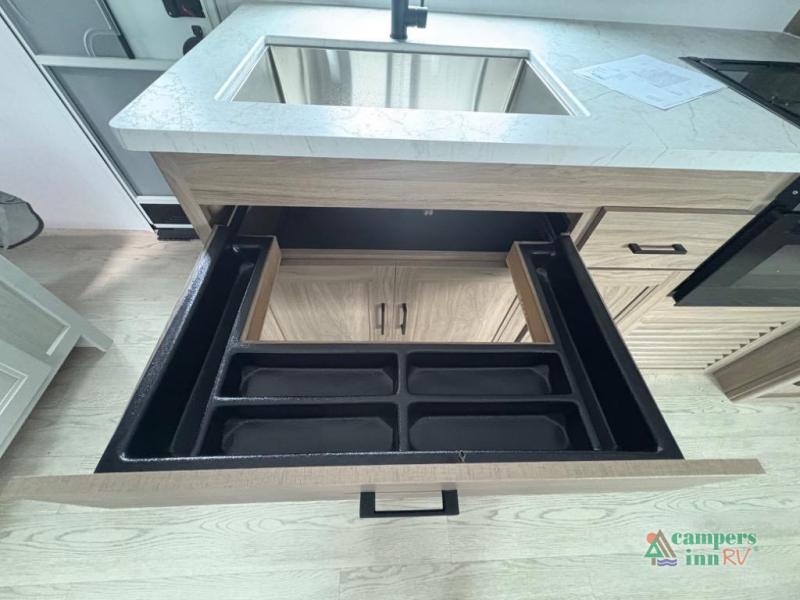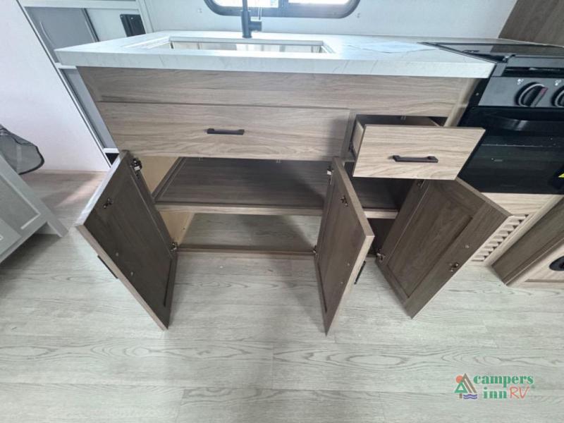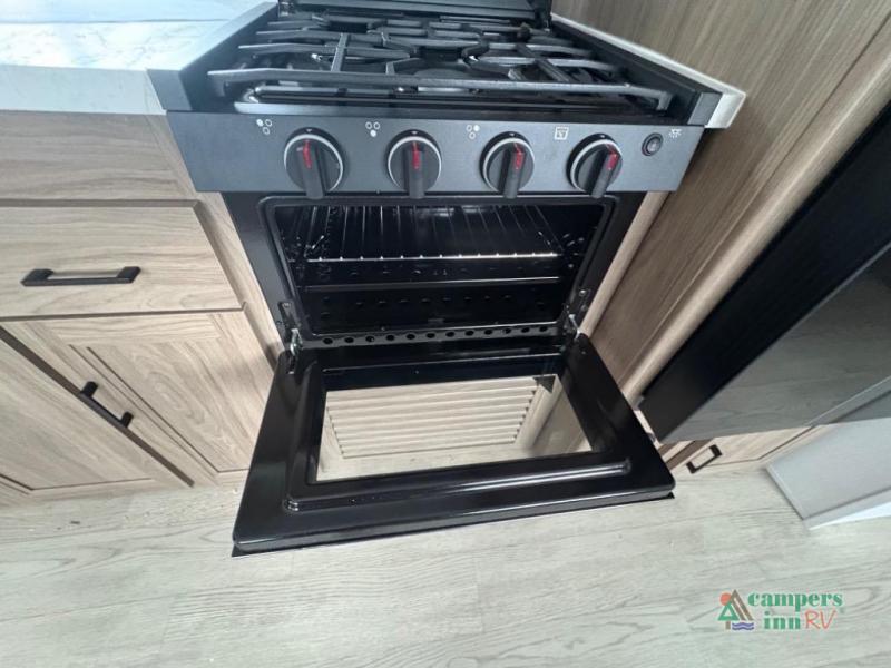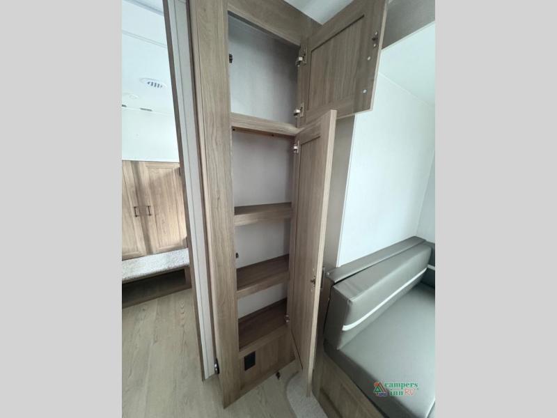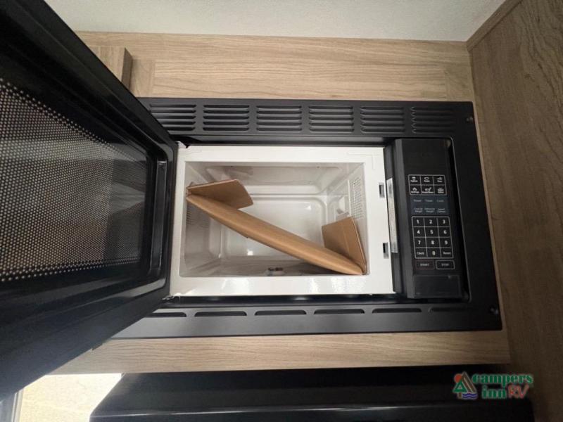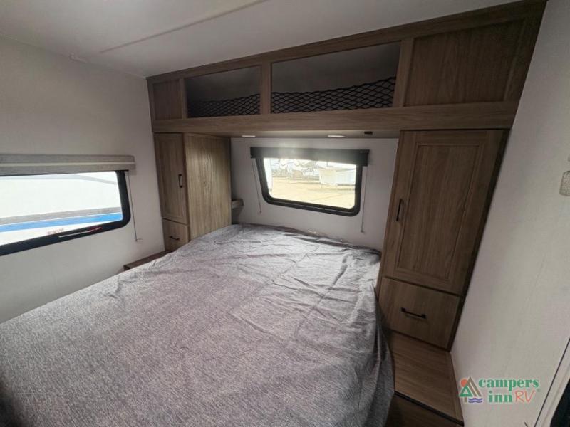 Whole-family fun is waiting for you in this spacious travel trailer. The kids or your guests will love the private bunkhouse with four bunks, plus a wardrobe with a countertop to keep their things. You will enjoy the front private bedroom with a walk-around queen bed and dual wardrobes, and if you have any other guests, they can sleep on the sofa or U-shaped dinette within the large slide out. The kitchen includes everything needed to prepare meals each day, including a microwave, a dual-burner cooktop, and a double door refrigerator. This model also includes a pass-through storage, plus additional exterior storage to bring along hiking gear, fishing poles, and camp chairs!