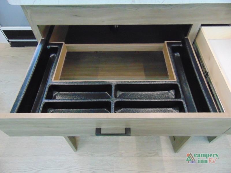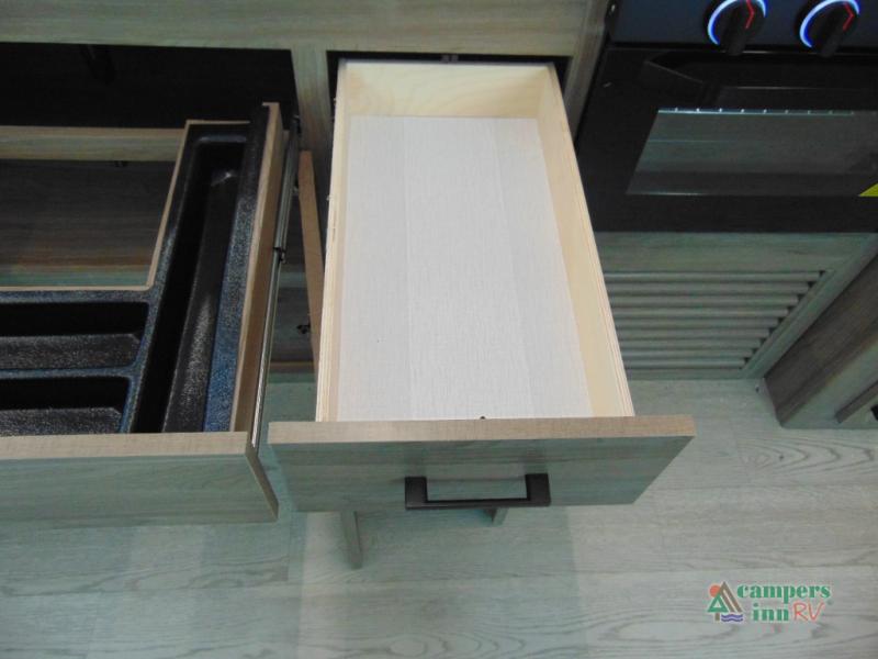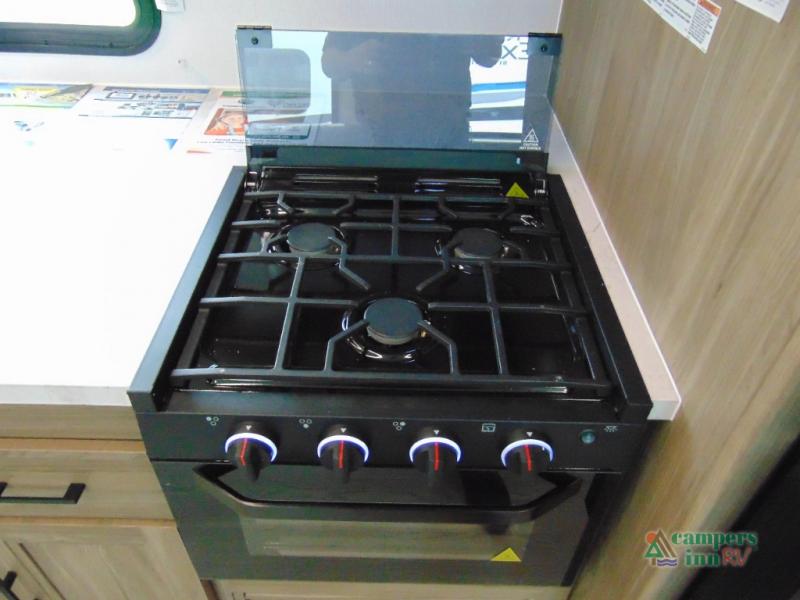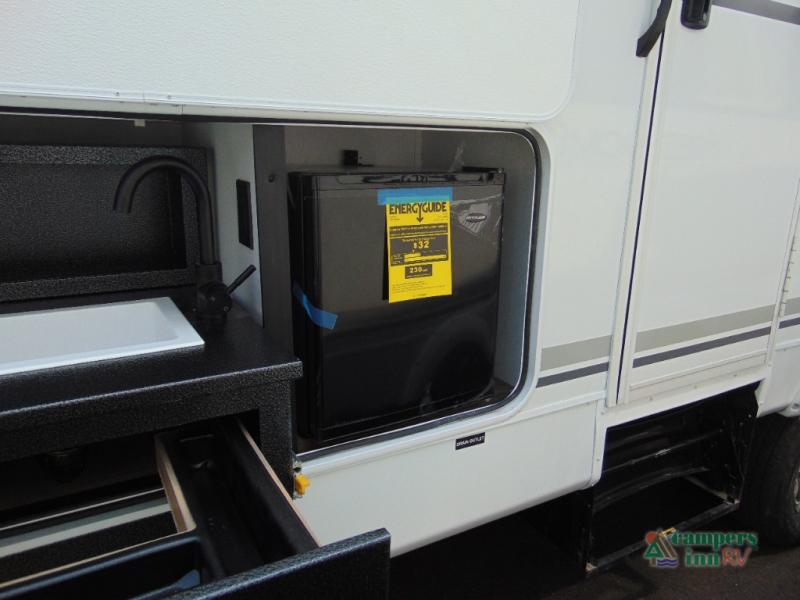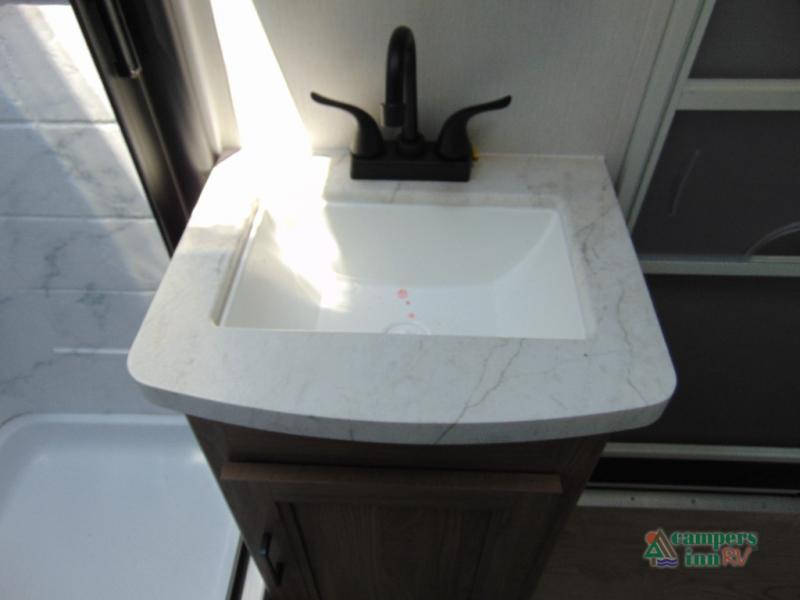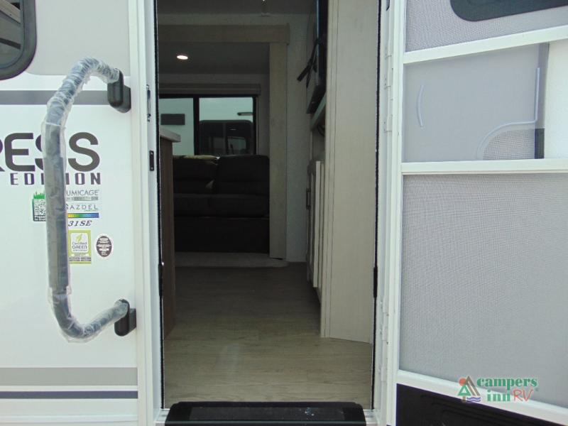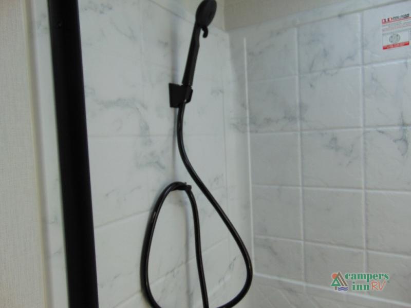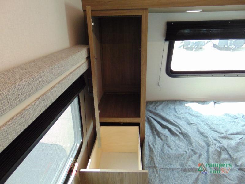 With any Freedom Express Select travel trailer by Coachmen you will find an alumicage construction and vacuum bonded walls with Azdel composite for a trailer made to last. These Select value models come standard with a Bluetooth interior speaker, night shades, and wear-resistant vinyl flooring throughout. You will appreciate the power tongue jack, as well as the Tufflex PVC roof and heated and enclosed underbelly to extend your camping season. A 15K BTU roof A/C will keep you comfortable, and the tankless water heater will provide endless hot showers!
