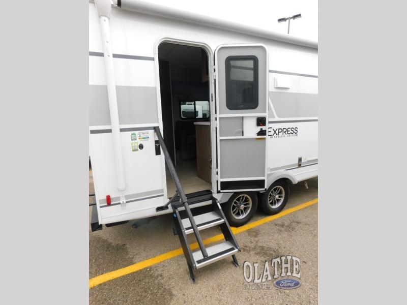 With any Freedom Express Ultra Lite travel trailer by Coachmen you will appreciate quality construction materials, such as vacuum bonded walls with Azdel composite, a 3/4 gel coated fiberglass cap with an automotive glass windshield, and a heated enclosed underbelly. Each model also features Tufflex PVC roofing, front rock guard, and E-Z Lube axles for smooth towing. Inside, you'll find kitchen backsplash, hidden hinge cabinetry, and wear-resistant vinyl flooring throughout. The power tongue jack included with the Ultra Lite Express Package will make set-up a breeze, and each model includes back-up camera prep and they are Freedom solar ready if you plan to go off-grid. Enjoy lightweight camping with a Freedom Express Ultra Lite travel trailer today!