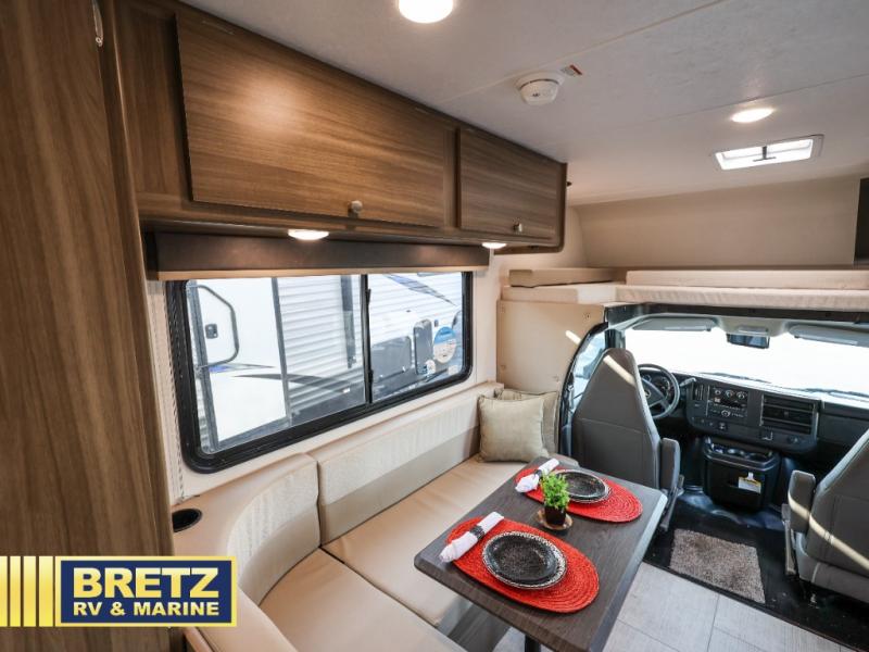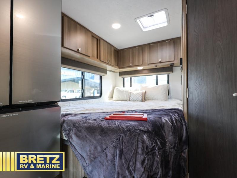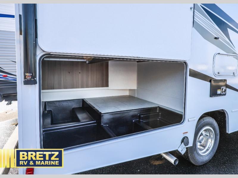 With any Freelander SS Class C gas motorhome by Coachmen, you will find a quality constructed coach for all your journeys. There is AlphaPly TPO seamless one-piece roof material and a max-length power awning with an LED light strip so you can enjoy evenings outdoors. You will also find a molded fiberglass front cap, a rotocast rear warehouse storage compartment, and an upgraded exterior safety grab handle. The mandatory SS Package includes a tankless water heater, running boards, and a towing hitch for your hauling needs. Head inside to enjoy the premium one-piece Thermofoil countertops and vinyl flooring, brushed nickle hardware, pleated night shades, and many more comforts.