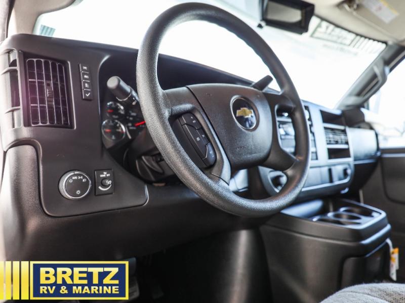 You will be met with comfort at every turn in this coach for six! Once you have stopped for the day, you can make lunch on the three burner cooktop and grab a cold drink from the 10 cu. ft. 12V refrigerator. There is a J-lounge with a pedestal table and extension where you can dine together, and the swing-arm TV in the cab will let you check the weather before heading outdoors. The rear corner full bath will let everyone freshen up when you return from hiking, and you'll enjoy a queen bed to sleep on each night, while your guest take the J-lounge and cab-over bunk!