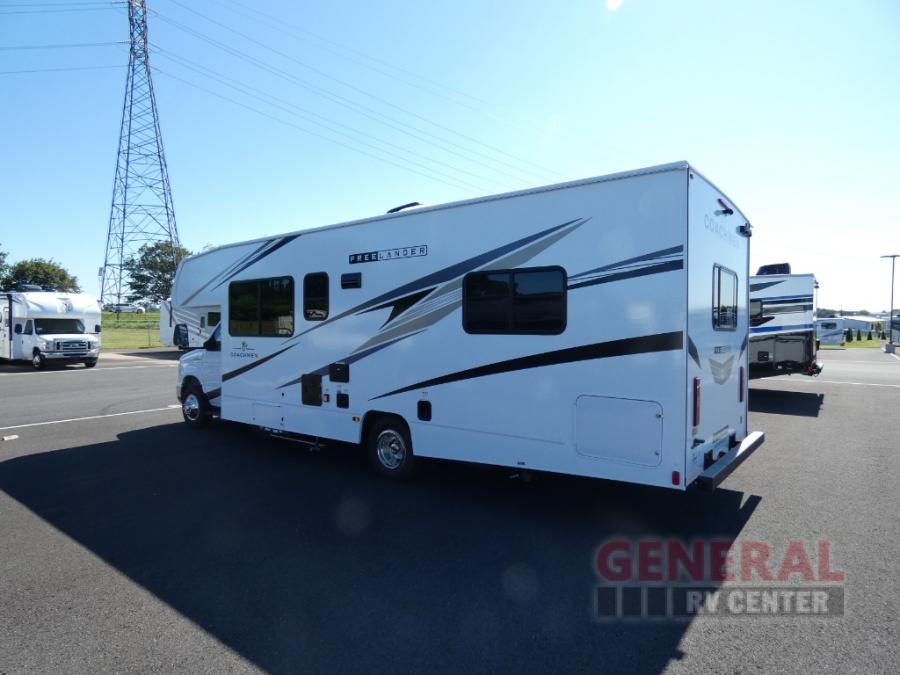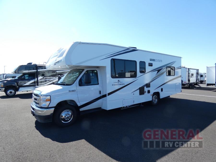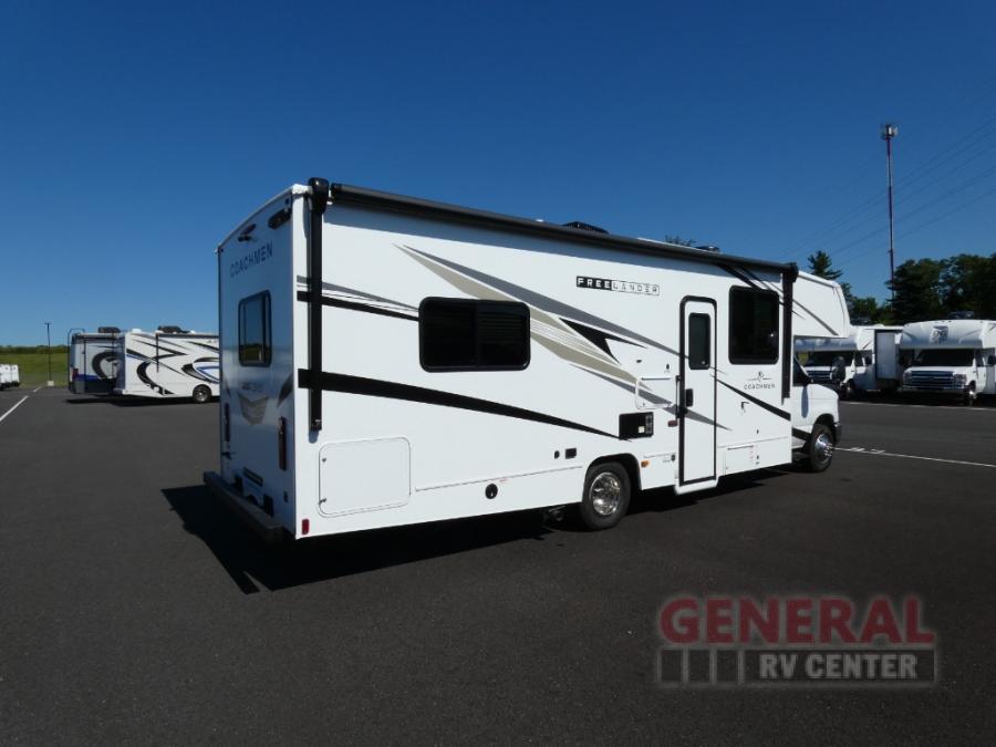 The Freelander Class C gas motorhome by Coachmen is a wonderful choice for anyone looking to get out on the road. A wide variety of floorplans and features offers something for everyone. The Azdel composite sidewalls and seamless one-piece roof membrane provide a solid structure to enjoy all your trips. Conveniences like storage above entrance door with an HDMI and charge station and reclining cockpit seats are standard, along with a rear color backup camera, a premium showerhead and faucet, and one-piece thermofoil countertops. The mandatory Explorer Package includes an exterior shower to rinse off before entering inside and an on-demand tankless water heater for hot water fast. Come find your favorite one today!